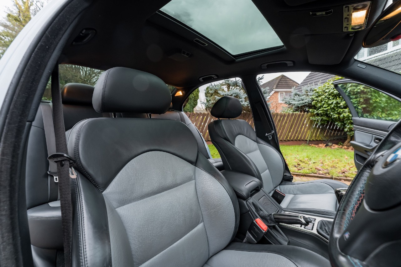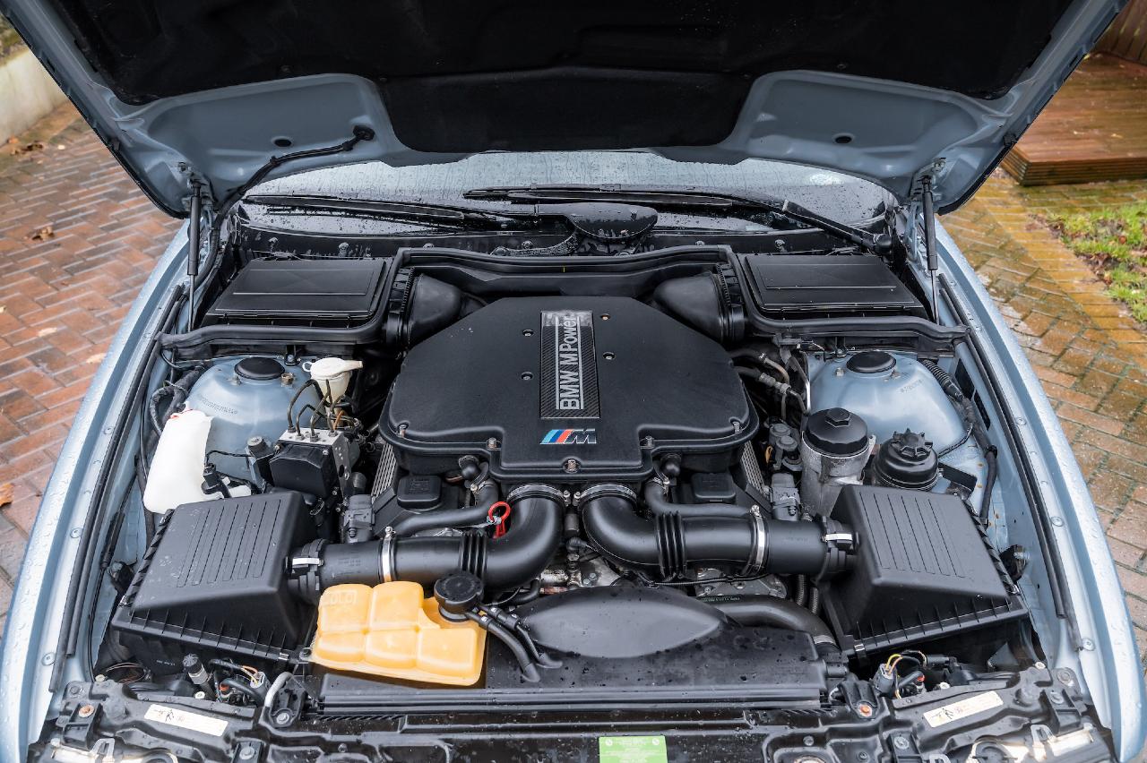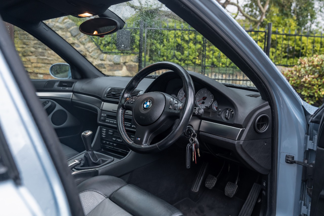 El BMW salió de fábrica en 2001 y está completamente de serie. La carrocería está acabada en color Silverstone Blue, calza llantas de 18 pulgadas envueltas en neumáticos Pirelli P-Zero, el interior está tapizado en cuero bitono de colores negro y plateado y, como curiosidad, luce la matrícula ‘M500 GBP’.