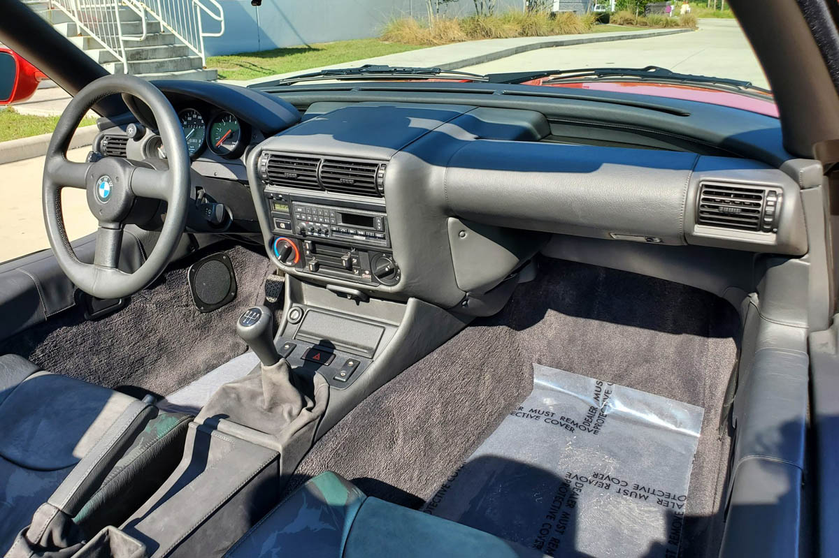 Actualmente su cuentakilómetros luce 284 kilómetros, una cifra que posiblemente lo convierte en uno de los Z1 con menor kilometraje del mundo. Es uno de los 3.102 BMW Z1 que salieron de la cadena de montaje con la carrocería en color ‘Toprot’ y techo negro. Quedan tan solo unas pocas horas para que finalice la subasta de este BMW Z1 con menos de 300 kilómetros, pero las pujas ya alcanzan los 75.000 dólares (63.000 euros, aproximadamente).