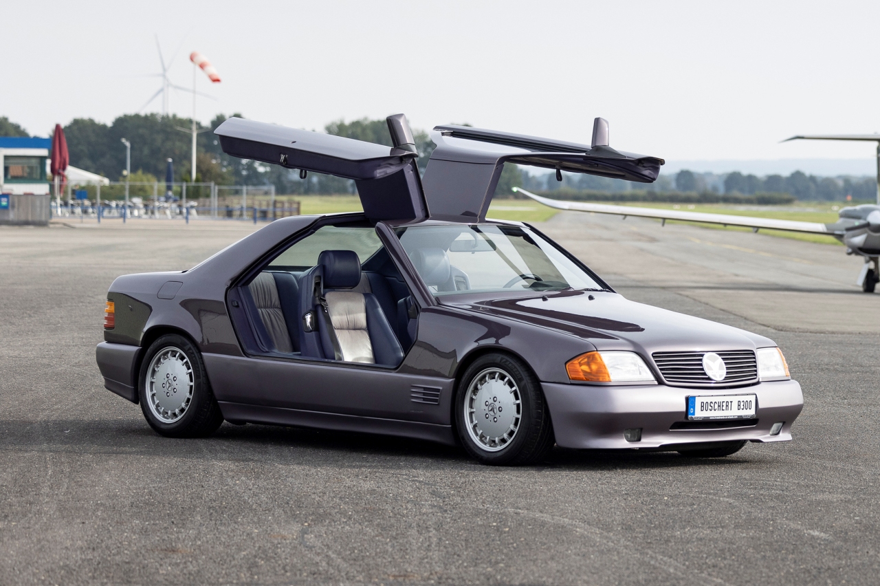 Uno de los coches más curiosos que vas a tener la oportunidad de comprar antes de que acabe el año es este rarísimo Boschert B300 Gullwing de 1989 que saldrá a subasta el próximo 25 de noviembre de la mano de RM Sotheby’s. Se trata de un vehículo personalizado por el ingeniero alemán Hartmunt Boschert que está basado en un Mercedes 300CE de la generación W124.