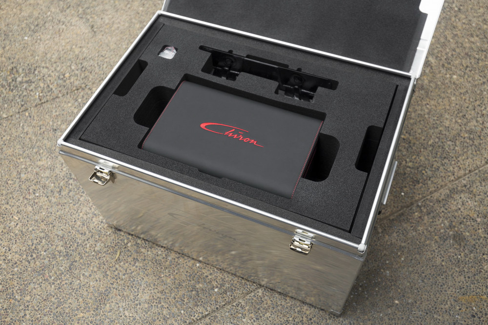 Además de este espectacular Bugatti Chiron, que recordemos que está equipado con un motor 8.0 W16 con cuatro turbos y 1.500 CV de potencia, el comprador recibirá la maqueta del Chiron a escala 1:8 realizada con las especificaciones exactas del vehículo real y que Bugatti entregó con el coche. Y a esto hay que sumar otra serie de accesorios custodiados en el interior de una caja de aluminio de Bugatti, como son el cargador de baterías, una funda, una memoria USB o el manual y la guía de usuario.