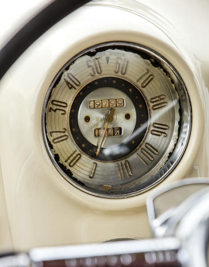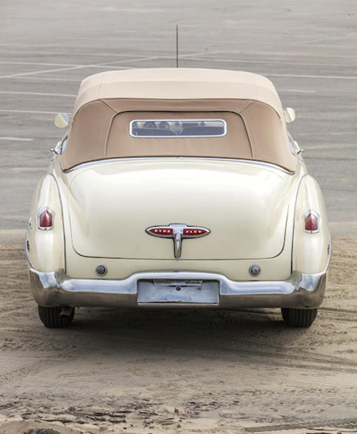 En perfecto estado también se encuentra el motor de ocho cilindros en línea con un solo carburador que desarrolla unos 150 CV de potencia. Está emparejado a una transmisión automática Dynaflow de dos velocidades y cuenta con una suspensión delantera independiente y cuatro frenos de tambor hidráulicos. Su odómetro indica que tiene 69.799 millas (112.330 kilómetros) recorridos en 73 años.