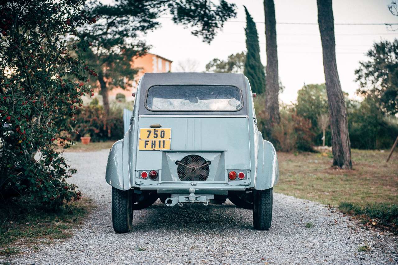 Cuenta con todos los elementos que caracterizaban a esta peculiar versión del 2CV: un segundo motor en la parte trasera, depósito de combustible adicional situado debajo del asiento del pasajero, palanca de cambios ubicada en el suelo, neumáticos más anchos, salidas de aire en el pilar trasero, etc.