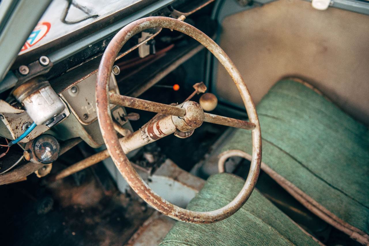 Recién sacado del granero, su estado dista mucho de ser ideal, puesto que hay óxido por todas partes y el interior acusa el paso del tiempo, pero la compañía afirma que en conjunto su estado general es extremadamente bueno.