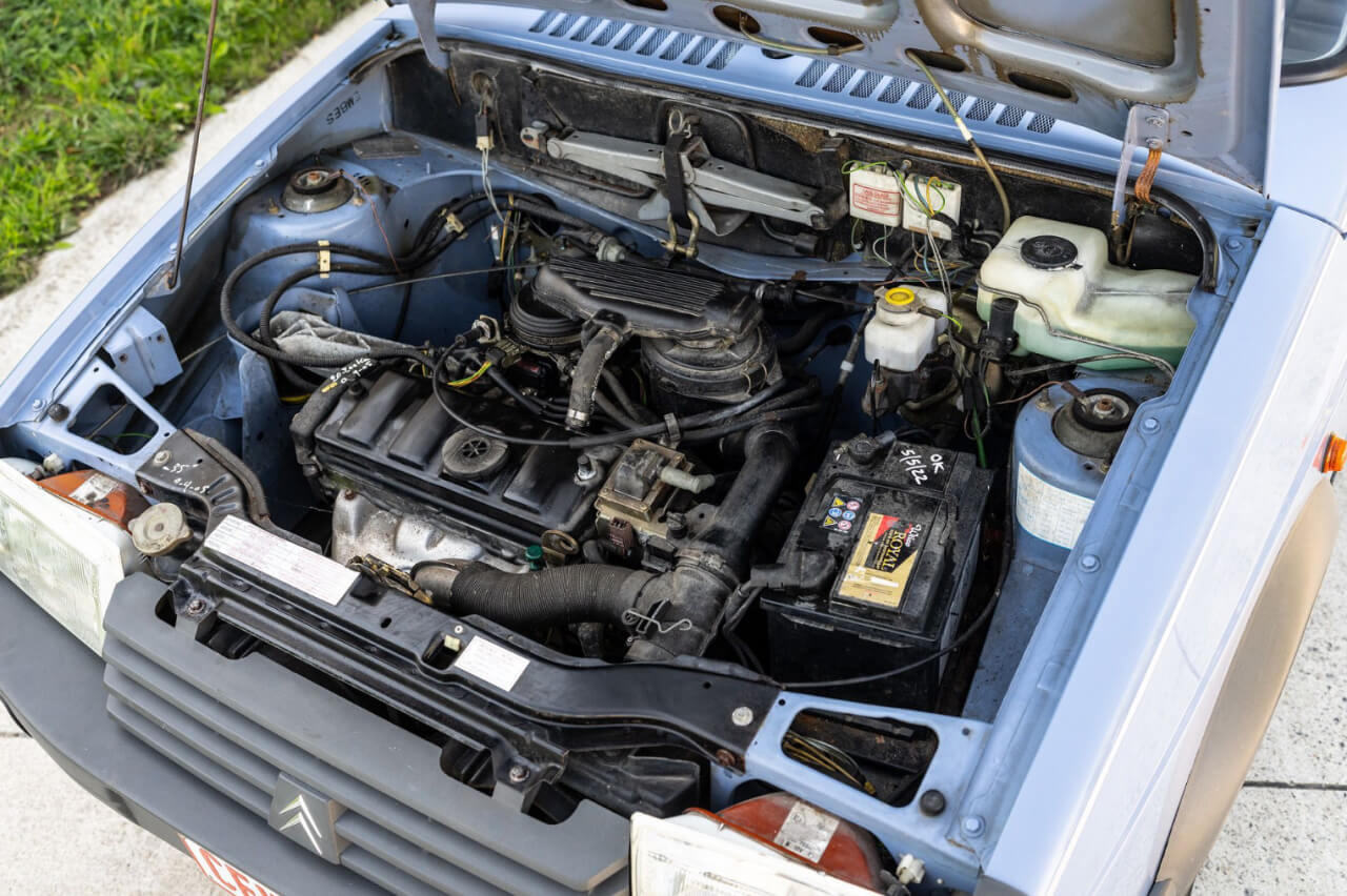 En particular, se trata de una unidad de la última versión (fase 3) del modelo. ES una versión familiar de 5 plazas terminada en un curioso tono de azul grisáceo sobre un interior con asientos de cuero y llantas originales de acero. Bajo el capó se esconde un motor de gasolina de 1.1 litros con inyección de combustible y 8 válvulas, una mecánica que entregaba 60 CV en la época y un par motor de menos de 90 Nm. La potencia se envía al tren delantero a través de un cambio manual.