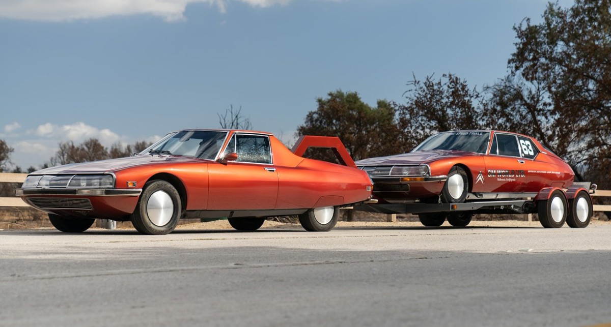 La historia del Citroën SM es bastante interesante por sí misma, pero lo cierto es que la de estos dos ejemplares tan peculiares que va a subastar Gooding & Company riza el rizo: nada menos que una unidad preparada para buscar (y conseguir) récords de velocidad y otra convertida en pick-up para remolcar a primera.