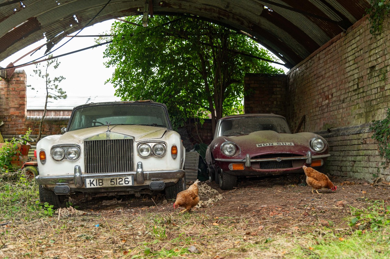 En la colección de coches abandonados, figura un Jaguar E-Type 4.2 litros de 1970, que estuvo sin uso desde 1986. El difunto marido de la vendedora lo compró como regalo de cumpleaños a mediados de los 70 y la familia lo utilizó hasta que intentaron robarlo mientras estaba aparcado en la puerta de Woolworths, por lo que se guardó en el granero. Allí ha permanecido intacto durante casi 40 años.