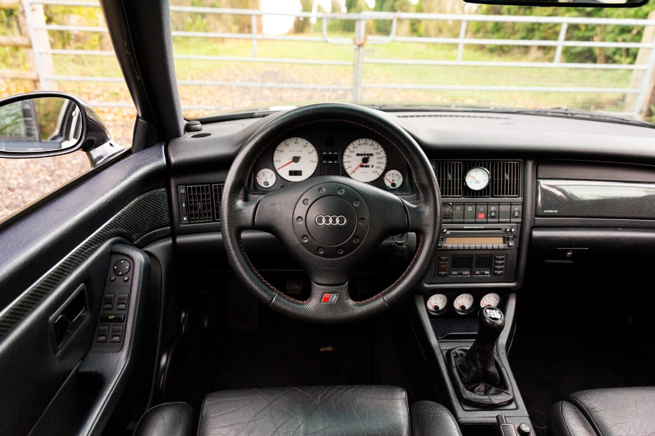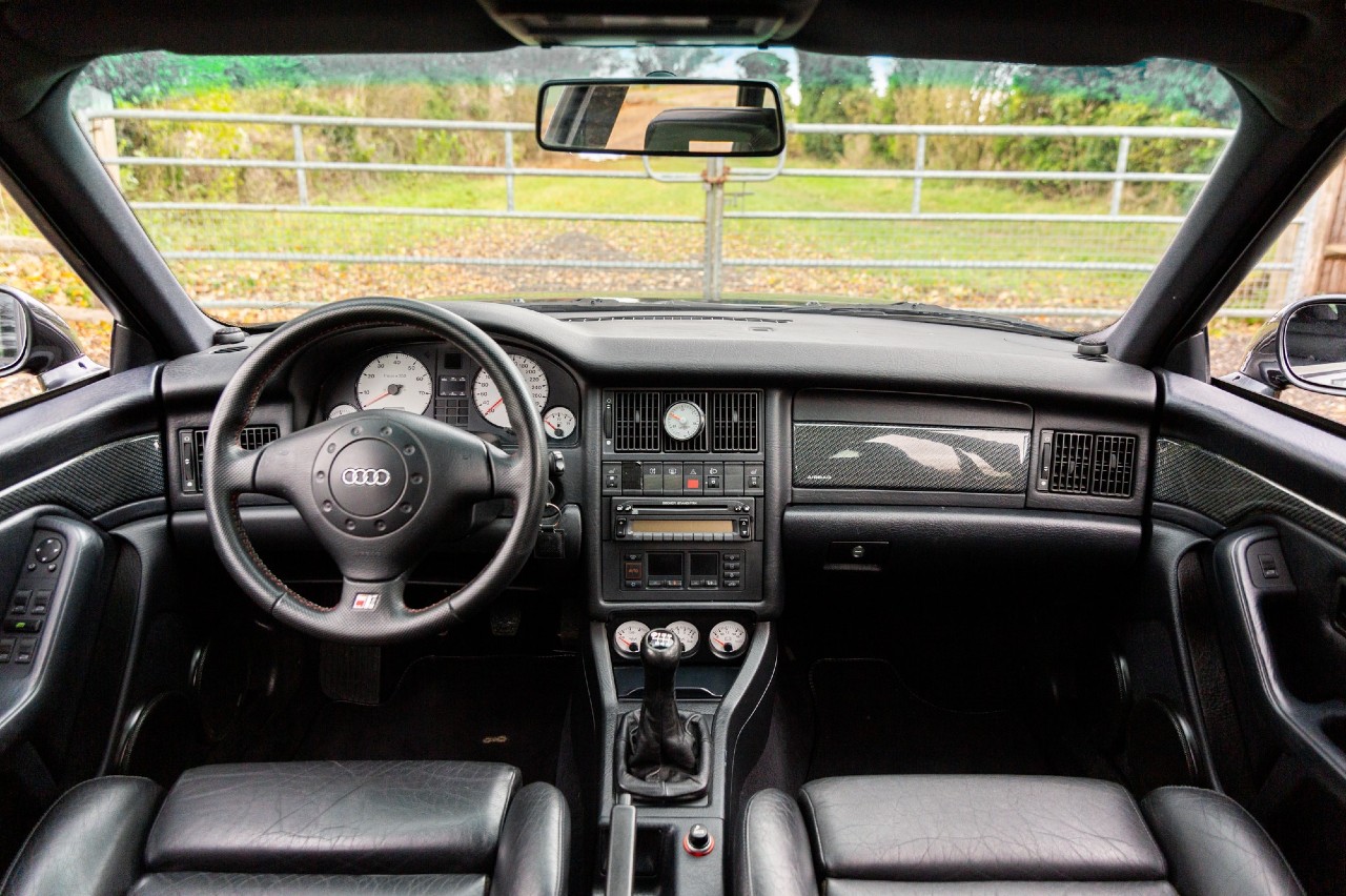 El Audi RS2 Avant (prueba) que sale a subasta está equipado con el motor de cinco cilindros turboalimentado y 2.2 litros que produce 315 CV y 409 Nm de par, dirigidos a las cuatro ruedas a través de un cambio manual de seis relaciones y tracción quattro. Está acabado con el color Volcano Black Pearl y un interior revestido en piel negra.