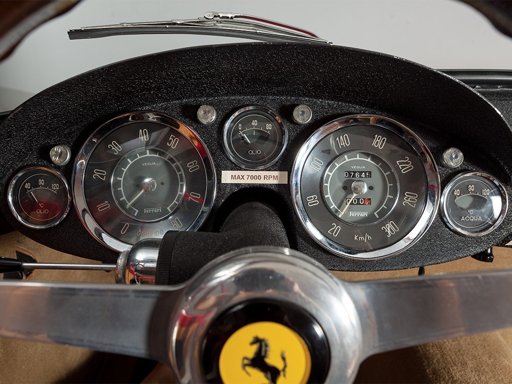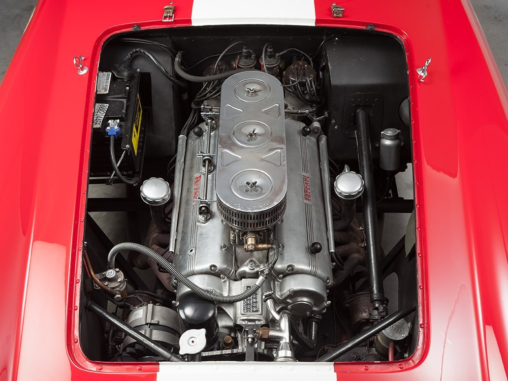 El diseño de Pininfarina, que llegó en el verano de 1957, añadió mayor comodidad al Ferrari 250 GT Berlinetta, al otorgarle una distancia entre ejes de 2.600 mm. Esconde un motor V12 de 3.0 litros con 239 CV de potencia asociado a una caja de cambios manual. Además, en la venta, junto al coche, se incluye un motor V12 desmontando e incompleto que podría ser empleado a modo de repuestos para el propulsor original.