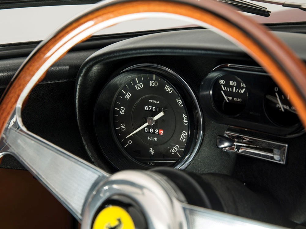 Y es que Ferrari tan solo produjo 10 ejemplares del 275 GTS/4 NART y esta unidad en particular es la última de la serie, así como el último entregado nuevo en Europa y el único pintado en Grigio Scuro de fábrica. Sin embargo, el paso de los años y sus casi cinco décadas de vida han conseguido, entre otras cosas, que su color exterior pase a ser rojo oscuro metalizado con un interior de cuero beige.