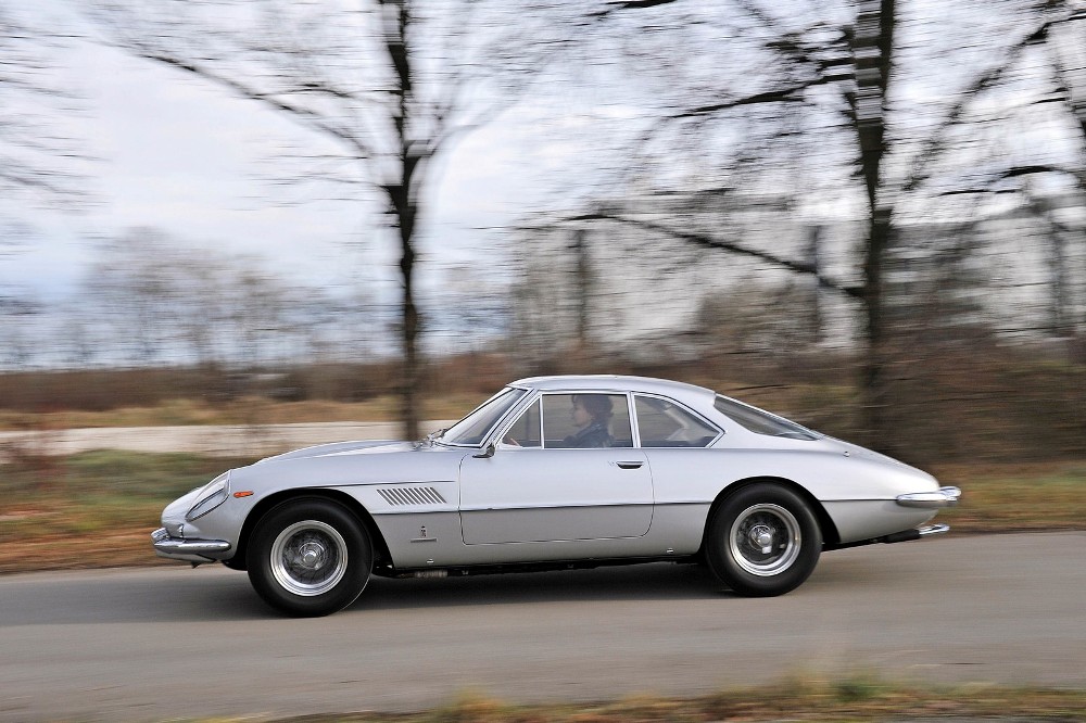 Poco después de su debut internacional, el Ferrari 400 SuperAmérica Aerodinámico Coupé se encumbró como el gran turismo más rápido del mundo gracias a su potente motor V12 de 4.0 litros asociado a una caja de cambios manual de cuatro velocidades con sobremarcha. Su producción fue muy limitada, de tan solo 18 unidades, y este ejemplar aún conserva su acabado plata exterior y el interior en negro.