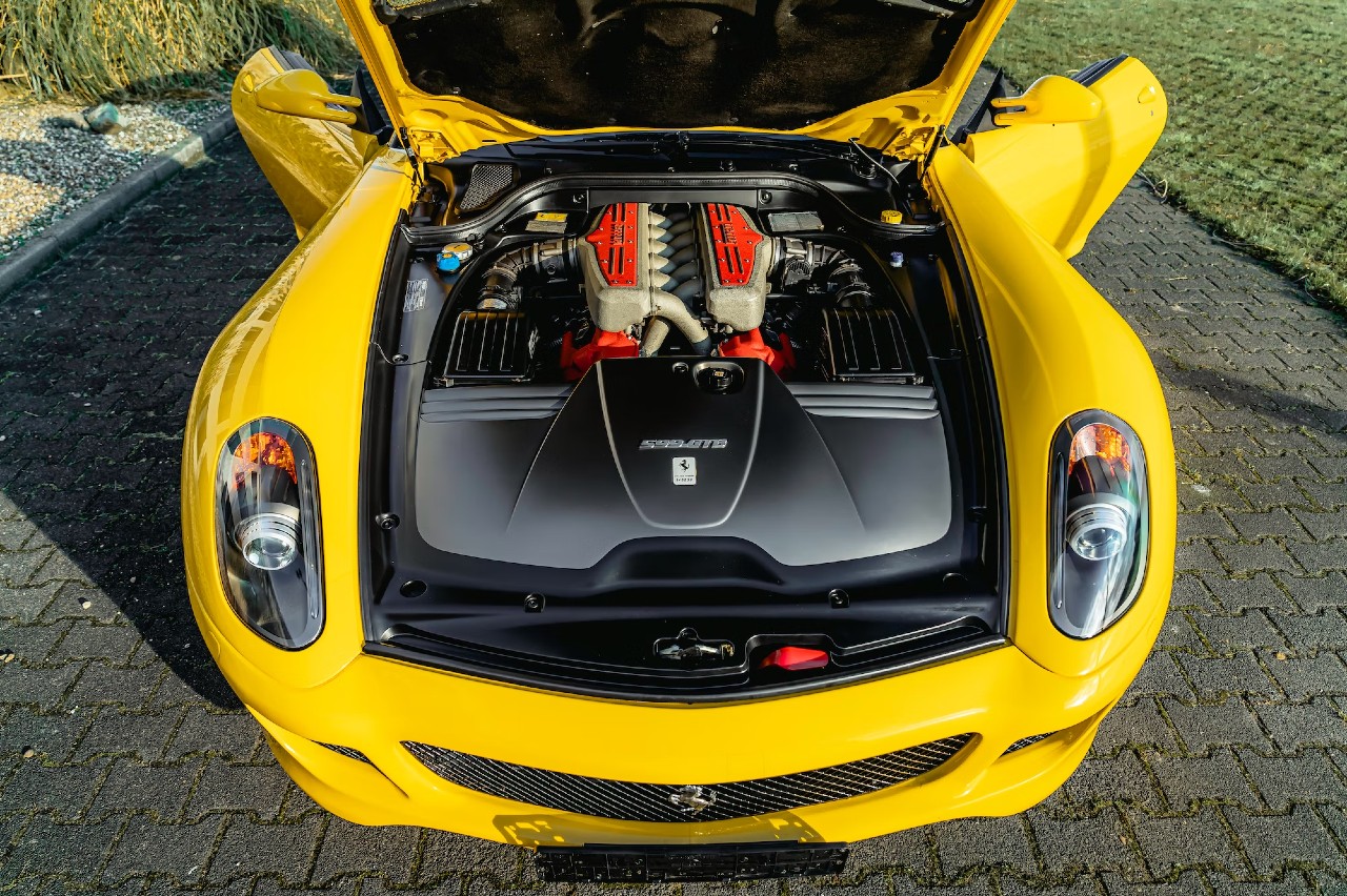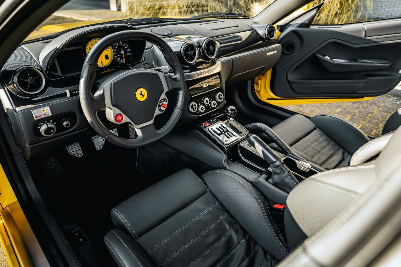 Este Ferrari 599 GTB Fiorano salió de fábrica en 2008 con un cambio automático de seis relaciones SuperFast F1. Pero, posteriormente, su propietario decidió sustituirlo por una transmisión manual de seis velocidades para mejorar el compromiso del conductor.