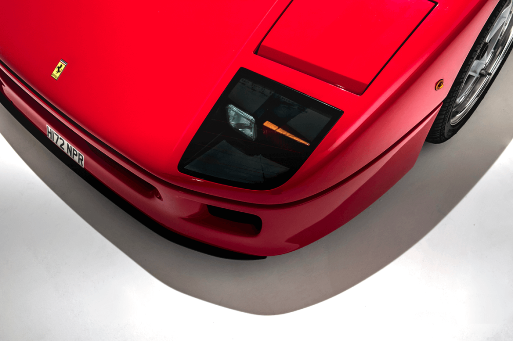 Se trata de una unidad terminada en Rosso Corsa del Ferrari F40 equipada con el conocido motor DOHC V8 biturbo de 2.9 litros con una potencia de 485 CV, lo que le permite pasar de cero a 100 km/h en 3,8 segundos y alcanzar una velocidad punta de más de 320 km/h. Además, es uno de los ejemplares sin convertidores catalíticos ni suspensión ajustable y con ventanas correderas, lo que lo hace más auténtico y cotizado entre los fanáticos.