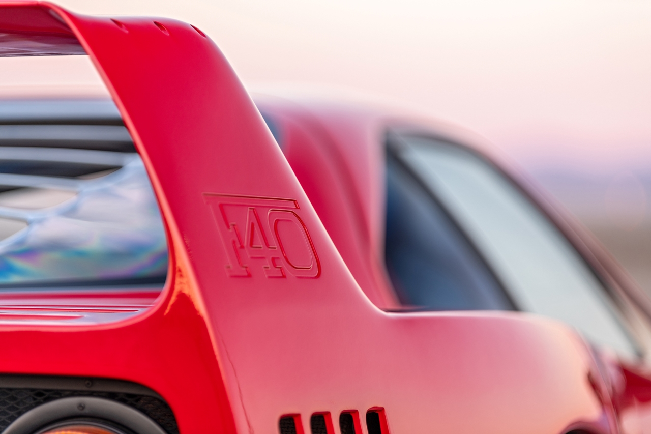 El vehículo en cuestión es uno de los solo 60 ejemplares del F40 que se entregaron nuevos en Estados Unidos en 1992, y uno de los 213 en total que llegaron con especificaciones americanas. Se ensambló en septiembre de 1991 y se terminó, como la mayor parte de los 1.315 ejemplares construidos, en color Rosso Corsa. Cuenta con un interior en negro con asientos rojos de fibra de carbono. Las llantas también son las originales del F40, en cinco radios en 17 pulgadas con neumáticos Pirelli P Zero asimétricos.
