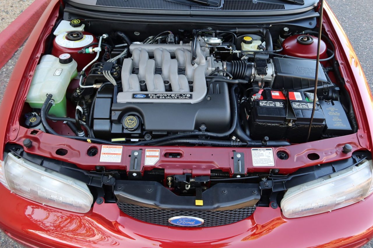 Uno de sus puntos clave lo encontramos bajo el capó. El corazón es un V6 Duratec de 2.5 litros con 24 válvulas y aspiración natural que entrega 170 CV de potencia y 220 Nm de par, ligado a un cambio manual de cinco velocidades. A pesar de que sus cifras son bastante modestas dados los estándares actuales, el propulsor fue desarrollado en colaboración con Porsche, lo que le da cierto caché.