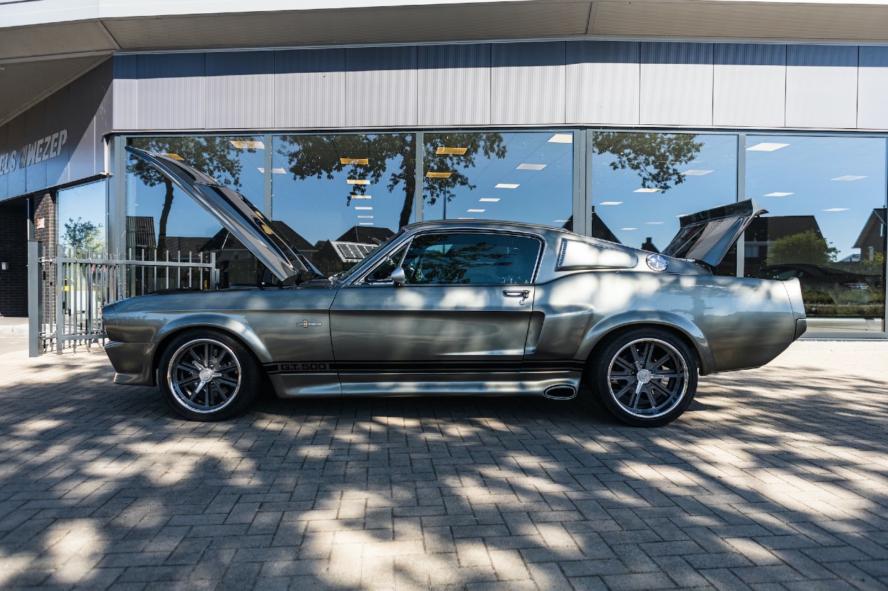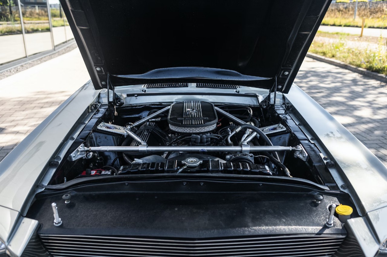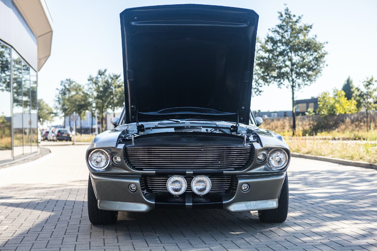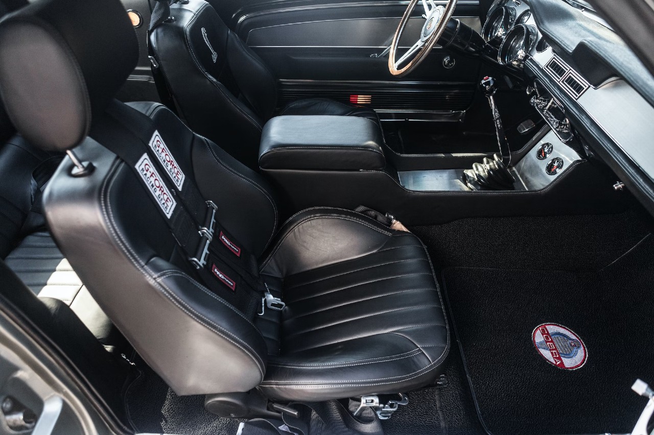 Estamos ante un clásico que se reconoce a primera vista, un homenaje que hizo Kult Cars al Ford Mustang Eleonor de ’60 segundos’. La carrocería está pintada en una combinación Dupont Pepper Gray con dos franjas negras y luce unas llantas Shelby de 17 pulgadas. El interior está revestido con asientos de cuero Shelby negro con costuras en contraste blancas y arneses G-Force. También encontramos un cuadro de instrumentos Carroll Shelby y unas alfombrillas Cobra.