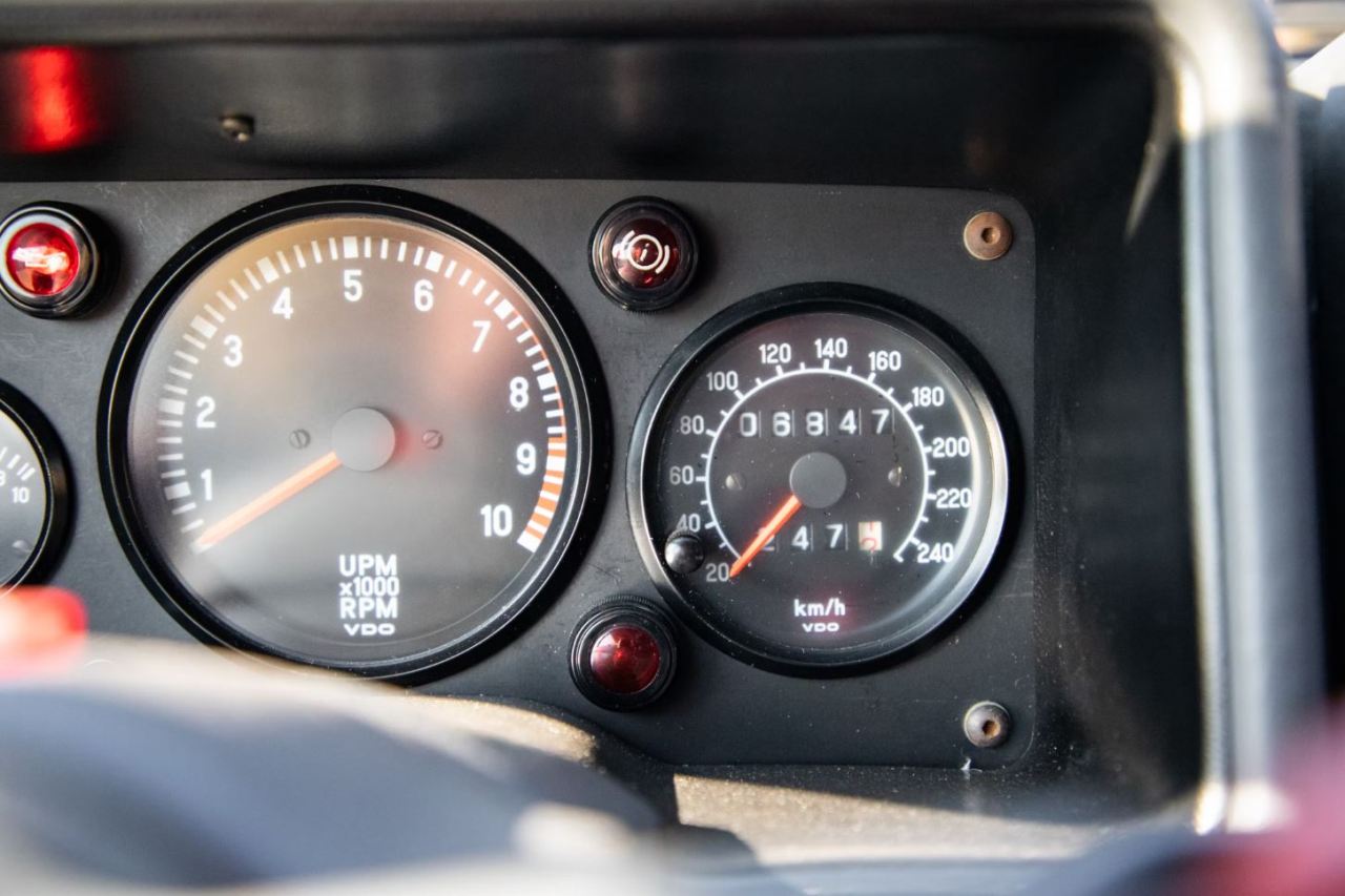 Ubicado en posición central en el chasis monocasco de carbono se encuentra un motor turbo de cuatro cilindros en línea y 1.8 litros que desarrolla 250 CV de potencia. El propulsor está ligado a un cambio manual de cinco velocidades que envía toda la potencia a un sistema de tracción a las cuatro ruedas. Según la lectura del cuadro, acumula 6.847 kilómetros desde que fue adquirido nuevo en 1985.