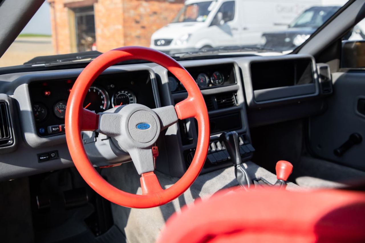 Este ejemplar en particular fue importando al Reino Unido en mayo de 2015, aunque tiene el volante a la izquierda. Está terminado en color blanco sobre llantas originales Ford Motorsport Speedline de 16 pulgadas con neumáticos Michelin Pilot Sport 3. El interior cuenta con asientos de carreras tapizados en rojo, a juego con el volante de tres radios y el pomo de la palanca de cambios. El resto del habitáculo es una combinación de grises y negros para el salpicadero, las puertas o la moqueta.