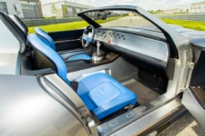 La carrocería se fabricó en fibra de vidrio con un núcleo de espuma para una mayor rigidez. De este modo, logra una distribución de pesos perfecta 50/50, con una longitud de carrocería apenas superior a un Mazda MX-5 NA (prueba). También luce un interior a medida totalmente personalizado con detalles en fibra de carbono y tapizados en cuero azul.