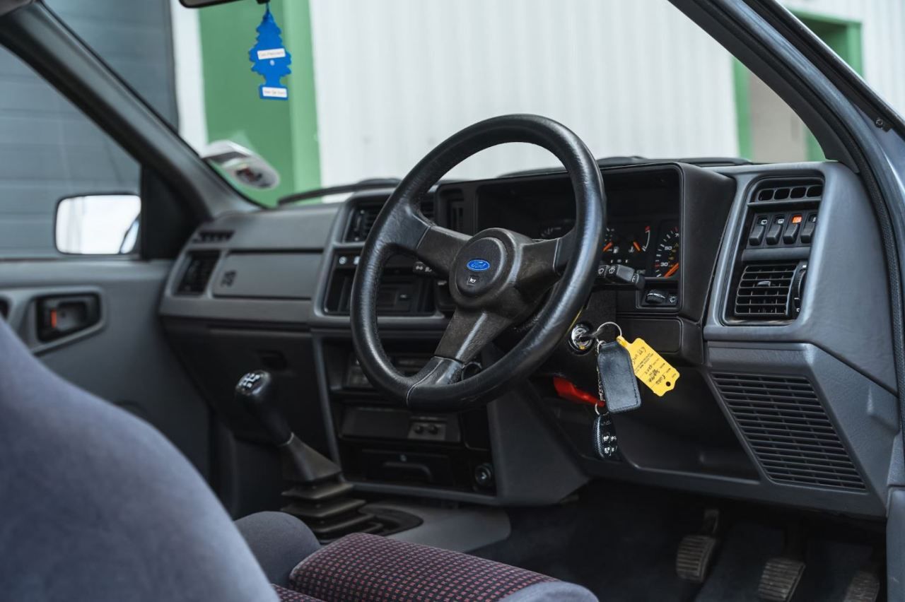 La unidad en cuestión se matriculó por primera vez en 1987 y está equipado con un kit RS500 que incluye el parachoques delantero y el alerón trasero inferior procedente de la edición especial. Está terminado en color Azul Piedra Lunar sobre un interior tapizado en terciopelo gris y tela roja Roma. Además, equipa un juego de llantas de aleación de 15 pulgadas con neumáticos Toyo Proxes TR1.
