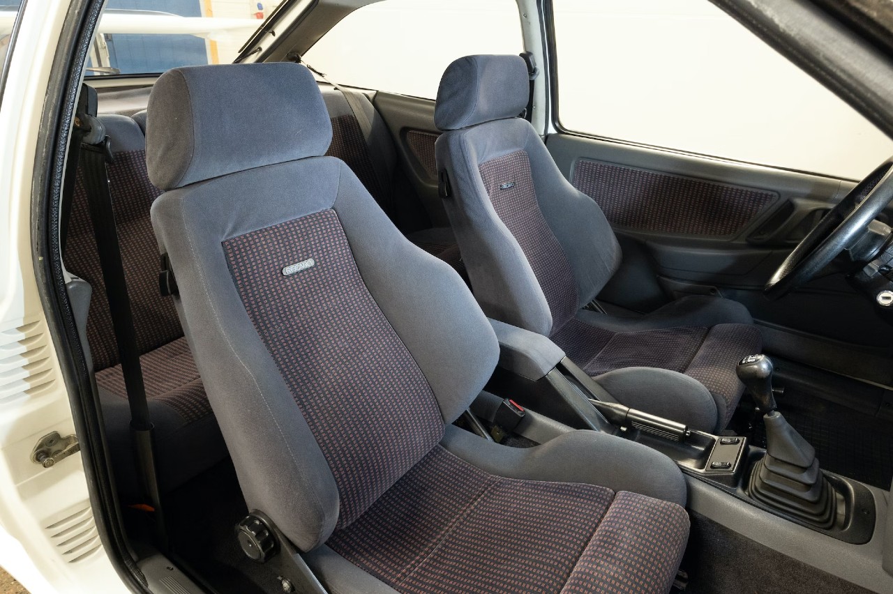 Decimos casi, porque las únicas modificaciones que se han realizado son un sistema de escape personalizado y la incorporación de la parrilla del RS 500. Por lo demás, está todo como en 1987, cuando salió de fábrica esta unidad. Luce una pintura Blanco Dimante, luce el característico alerón trasero en forma de ‘cola de ballena’ y calza unas llantas de aleación Rial de 15 pulgadas con radios cruzados.