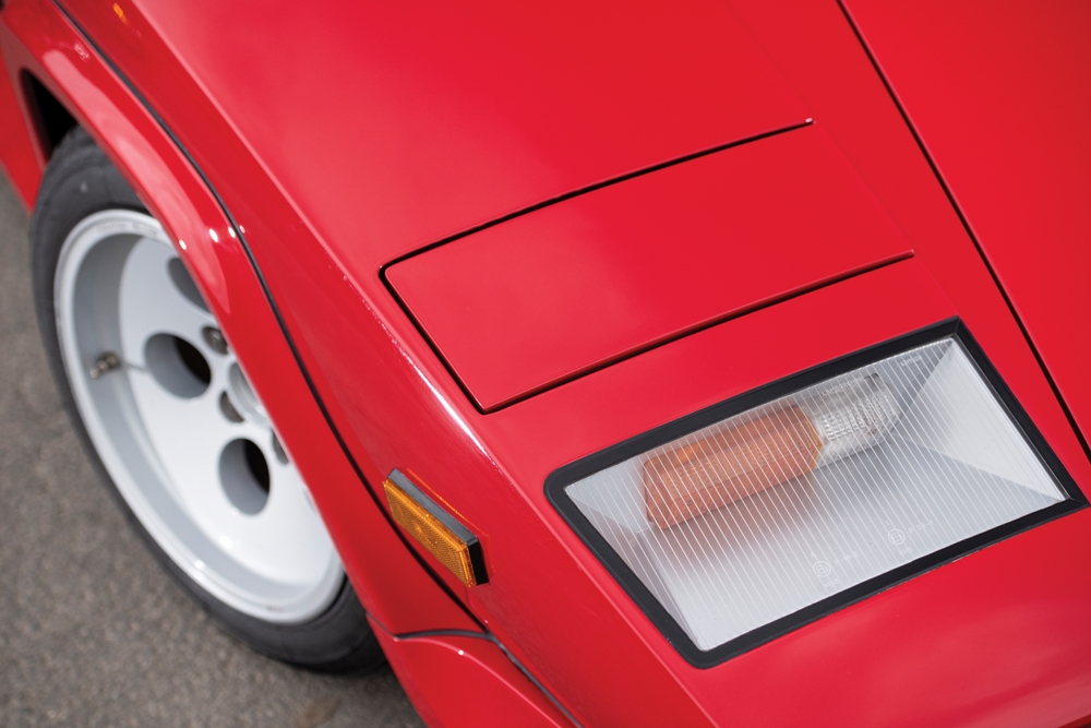 Este ejemplar en particular es un Lamborghini Countach LP500 S de 1984 terminado en color rojo sobre un interior en beige, equipado con llantas de 15 pulgadas y neumáticos traseros en medida 345/35. El coche fue entregado nuevo a su primer propietario en Velbert, Alemania, el 10 de marzo de 1984, y permaneció junto a él durante 30 años. En ese período, el Countach LP500 S recorrió menos de 14.500 kilómetros, nunca fue restaurado y se encuentra con su pintura e interior originales.