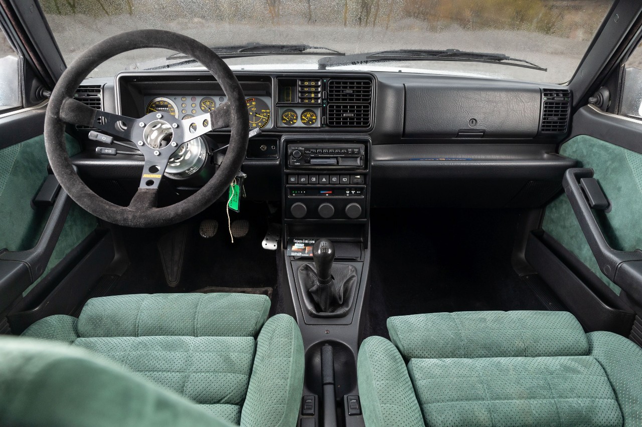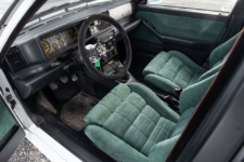 La pintura blanca exterior es original y en su interior luce una elegante tapicería de alcántara verde sin muestras de desgaste o hundimiento. El salpicadero cuenta con la característica instrumentación de números amarillos sobre fondo negro, un diseño que teletransporta inmediatamente a finales de los 80 y principios de los 90. Un detalle de su buen estado de conservación es que aún conserva algunos plásticos de protección en la consola central. También incluye algunas especificaciones introducidas por Baudouin Lempereur, como el volante.