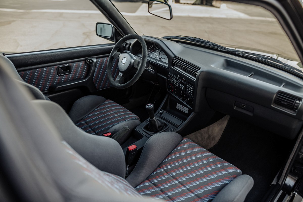 Esta unidad en particular es una de las 600 jamás fabricadas y se entregó nuevo en enero de 1990. Tras pasar varios años en Alemania, el coche se importó al Reino Unido en 2001 y a Estados Unidos en 2015. El exterior está terminado en Gloss Black con un interior de tela tricolor exclusivo del modelo ‘Evo’. Le acompañan asientos Recaro, cinturones de seguridad en color rojo y adornos en piel vuelta para el volante y la palanca de cambios.