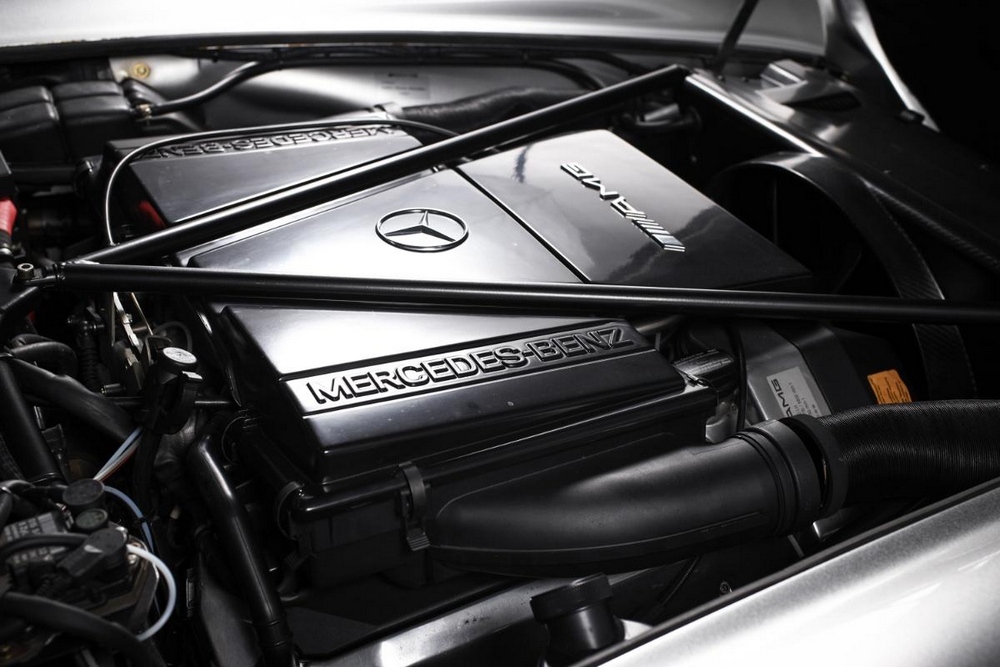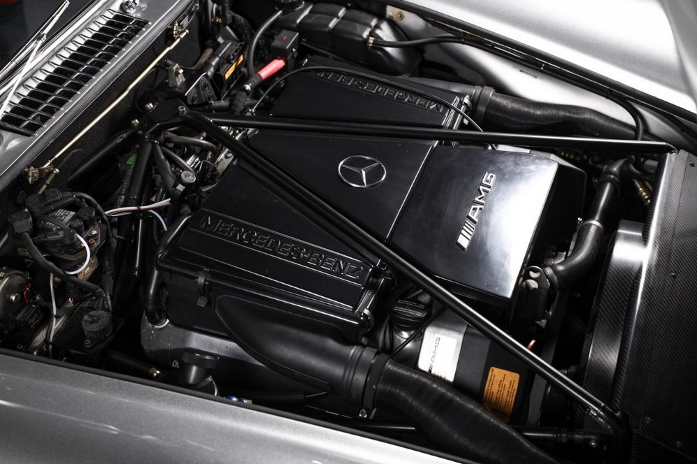 Uno de los aspectos más llamativos del Mercedes 300 SL AMG es su propulsor. Y es que la división deportiva de la marca alemana reemplazó el bloque original atmosférico de seis cilindros en línea por un colosal motor 6.0 V8. Se trata en concreto del M119, una mecánica que en este caso desarrolla 380 CV de potencia y que está asociada a una caja de cambios automática con cuatro velocidades.