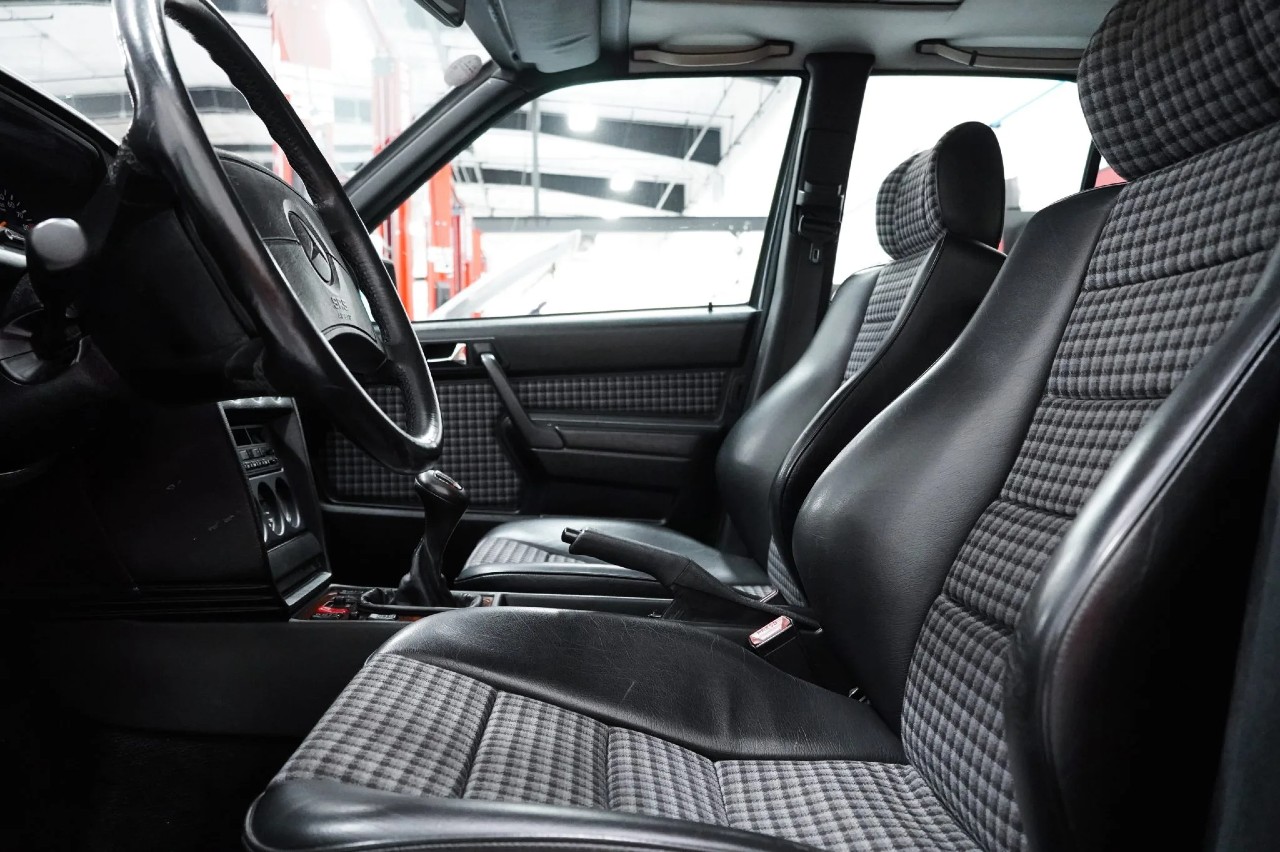 Entre las mejoras del paquete AMG PowerPack, hay que destacar la suspensión regulable, las llantas de 17 pulgadas, el techo solar eléctrico, los asientos delanteros Recaro, aire acondicionado y radio casete estéreo. El vehículo ha recibido una profunda revisión antes de ser subastado, en la que se le han cambiado los fluidos y se le ha instalado un nuevo embrague, un ventilador y un termostato.