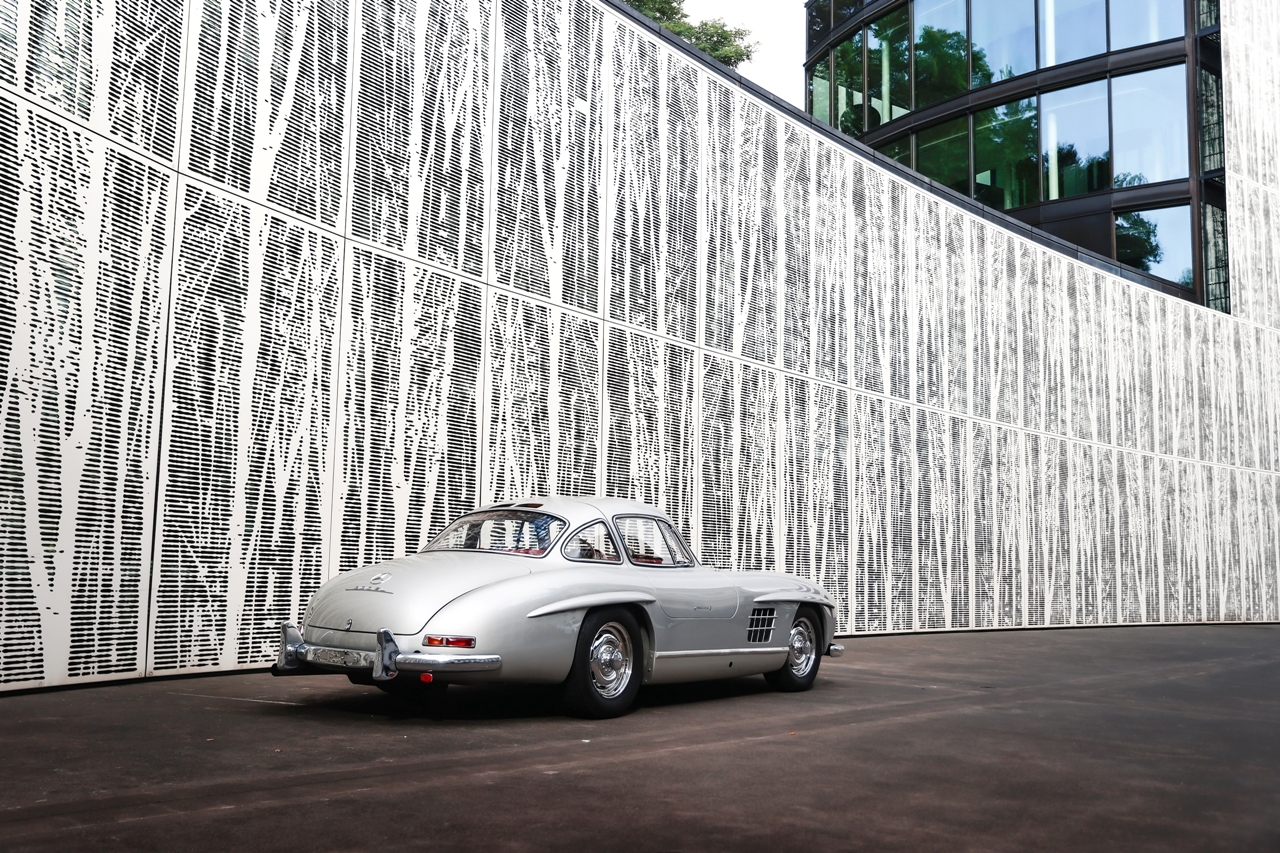 El vehículo en cuestión salió de la línea de producción el 19 de septiembre de 1955 como una de las 855 unidades fabricadas ese año. Según el registro, este 300 SL Gullwing se entregó a su primer propietario en Hamburgo (Alemania). Es uno de los solo 38 ejemplares terminados en color White Gray DB 158 ese año, con un interior de cuero rojo bajo el código 1079.