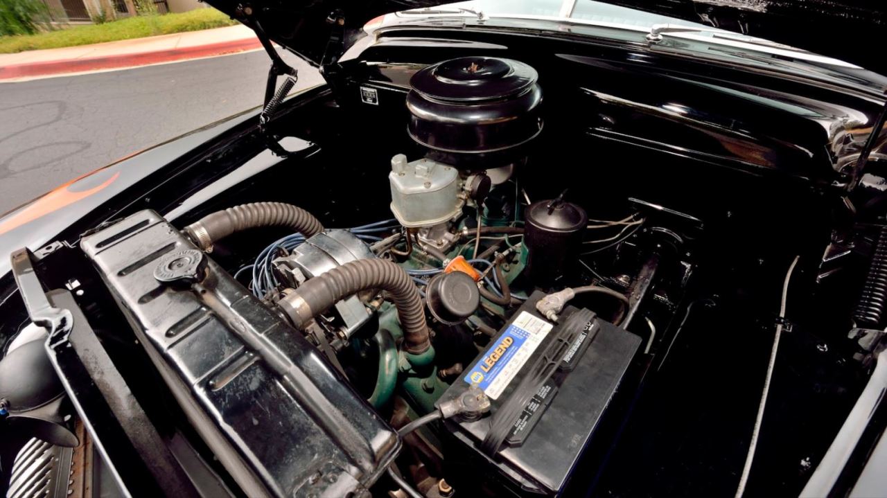 Bajo el capó se esconde un motor V8 gestionado por un cambio manual de tres velocidades con palanca en la columna de dirección. Fue construido y personalizado originalmente por Eddie Paul de la empresa que lleva su propio nombre, Customs by Eddie Paul. Para acreditar esto último se incluye junto al coche una carta notarial firmada por el preparador que identifica este coche como el “Carro del infierno” construido para Paramount Pictures y utilizado en ‘Grease’.