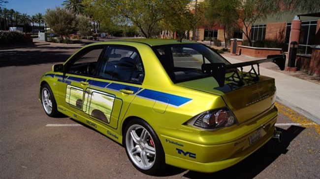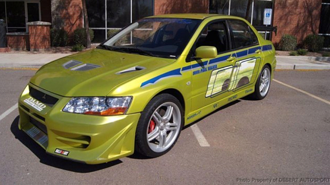 El Mitsubishi Lancer EVO VII de 2 Fast 2 Furious que sale a subasta está situado en un concesionario de Phoenix, Arizona –EE.UU.-. Desde que salió de la factoría de Mitsubishi en Japón en el año 2001 ha recorrido tan solo 800 millas –algo más de 1.200 kilómetros-. Fue importado a Estados Unidos específicamente para el rodaje de la popular película, pues todavía no estaba a la venta en el mercado estadounidense.