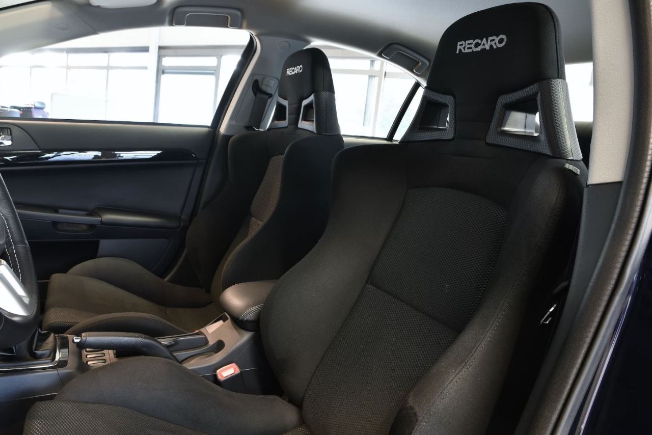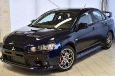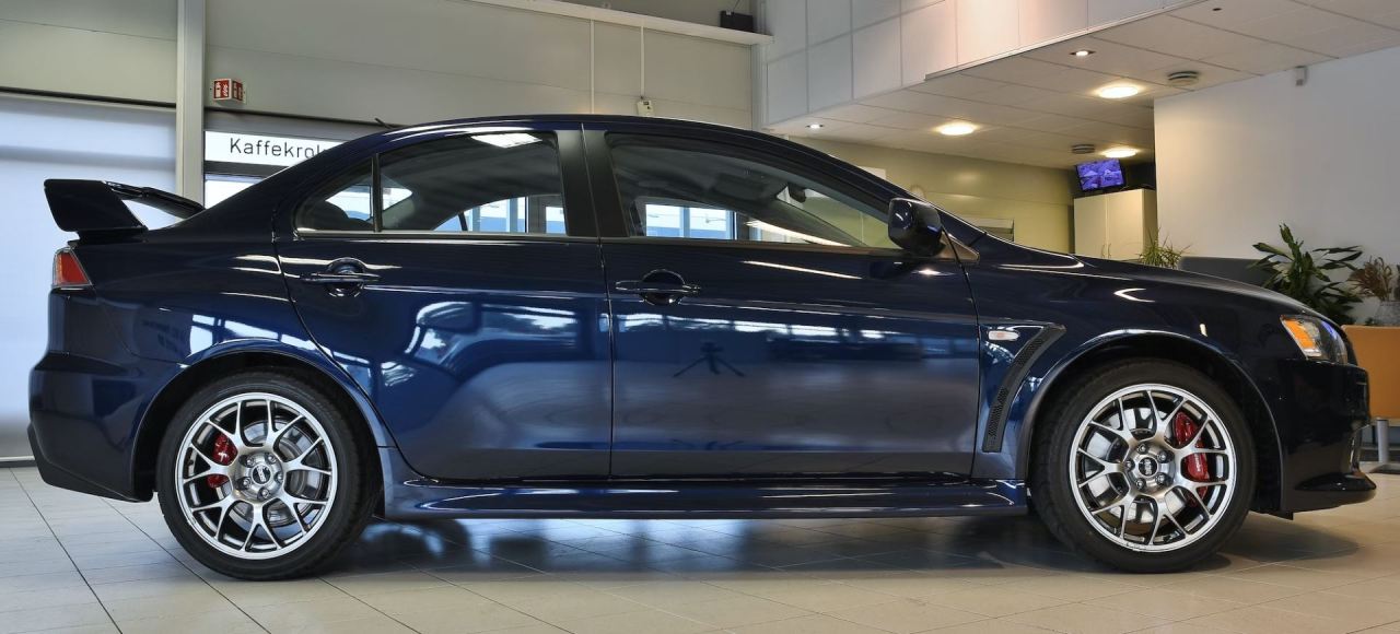 Se trata de un ejemplar perteneciente a la última generación del Mitsubishi Lancer Evolution -conoce su historia-. Según el anuncio de la venta, el coche nunca ha sido registrado y tiene tan pocos kilómetros que se puede considerar como completamente nuevo. Está terminado en color Tanzanite Blue sobre un juego de llantas BBS de 18 pulgadas calzadas con neumáticos Dunlop SP Sport 600 y un equipo de frenos Brembo con pinzas de color rojo.