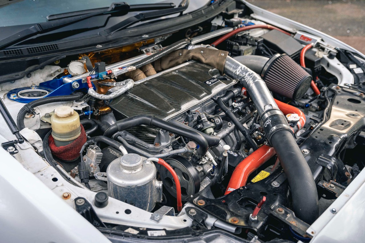 Aparte, cuenta con frenos de carreras Alcon billet, pastillas de carbono DS UNO, suspensiones Niltron, llantas ligeras, un cárter de aleación con deflectores, asiento de carbono, una jaula antivuelco, un sistema de encendido electrónico y un extintor.