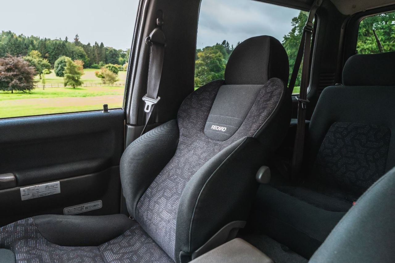 El vehículo en cuestión está registrado en el Reino Unido desde 2019 y luce un exterior de color blanco en bastante buen estado de conservación, con parachoques específicos, taloneras, un capó ventilado, pasos de rueda ensanchados y un alerón trasero. Cuenta, por supuesto, con un interior de tela gris y negra con asientos delanteros Recaro. Todo el conjunto reposa sobre un juego de llantas blancas de 16 pulgadas con neumáticos Yokohama.