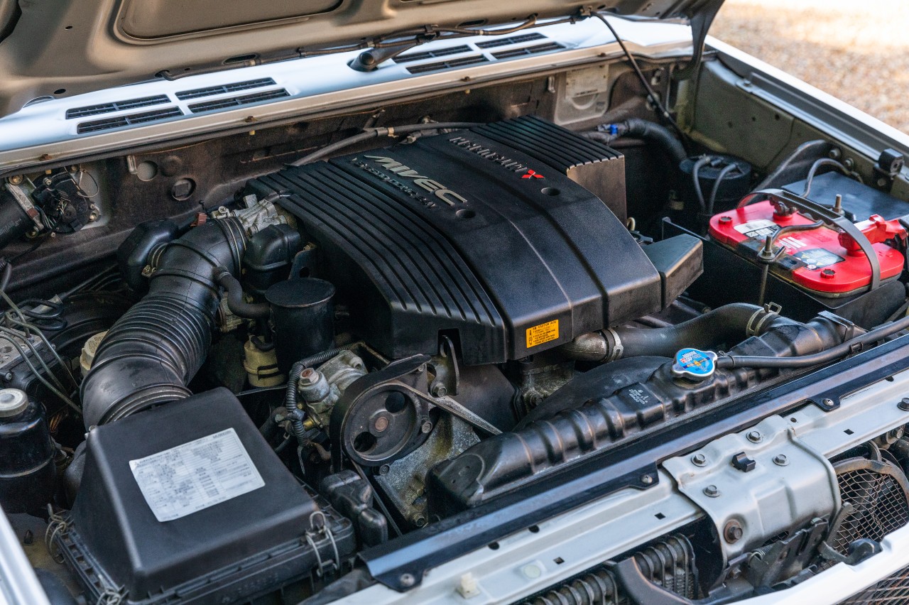 Lleva decorada la carrocería en color Satellite Silver metalizado, calza las llantas originales de 16 pulgadas envueltas en neumáticos Yokohama Geolandar A/T que están prácticamente nuevos y cuenta con un equipamiento que incluye elevalunas eléctricos, retrovisores exteriores eléctricos, luna trasera calefactable, climatizador automático y un sistema de sonido con casete de la propia Mitsubishi.