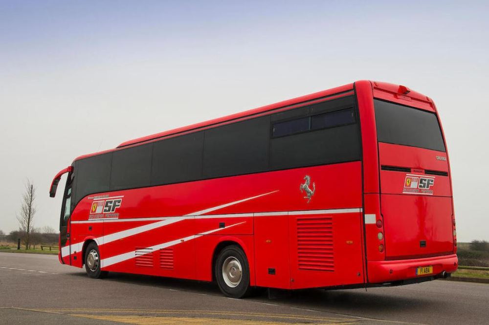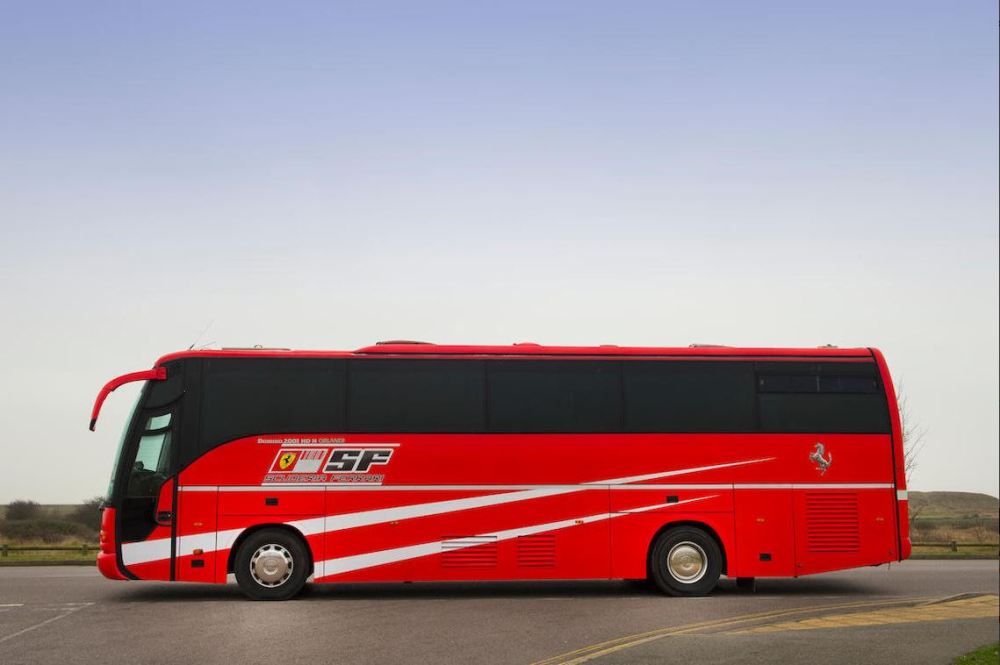 Registrado en el Reino Unido y utilizado por pilotos como Michael Schumacher y Rubens Barrichello, estuvo en activo en el equipo Ferrari de Fórmula 1 entre el año 2001 y 2005, un período durante el cual Schumacher consiguió cuatro de los siete títulos de Campeón del Mundo que tiene en su haber. Se trata de un autobús Iveco, un fabricante italiano con sede en Turín, modelo Domino Orlandi HDH.