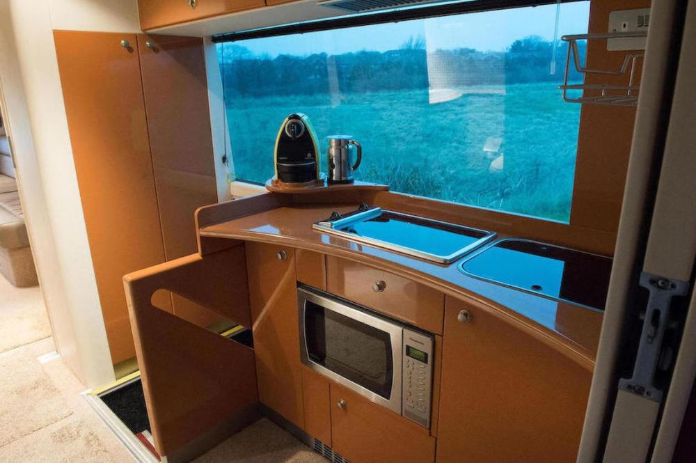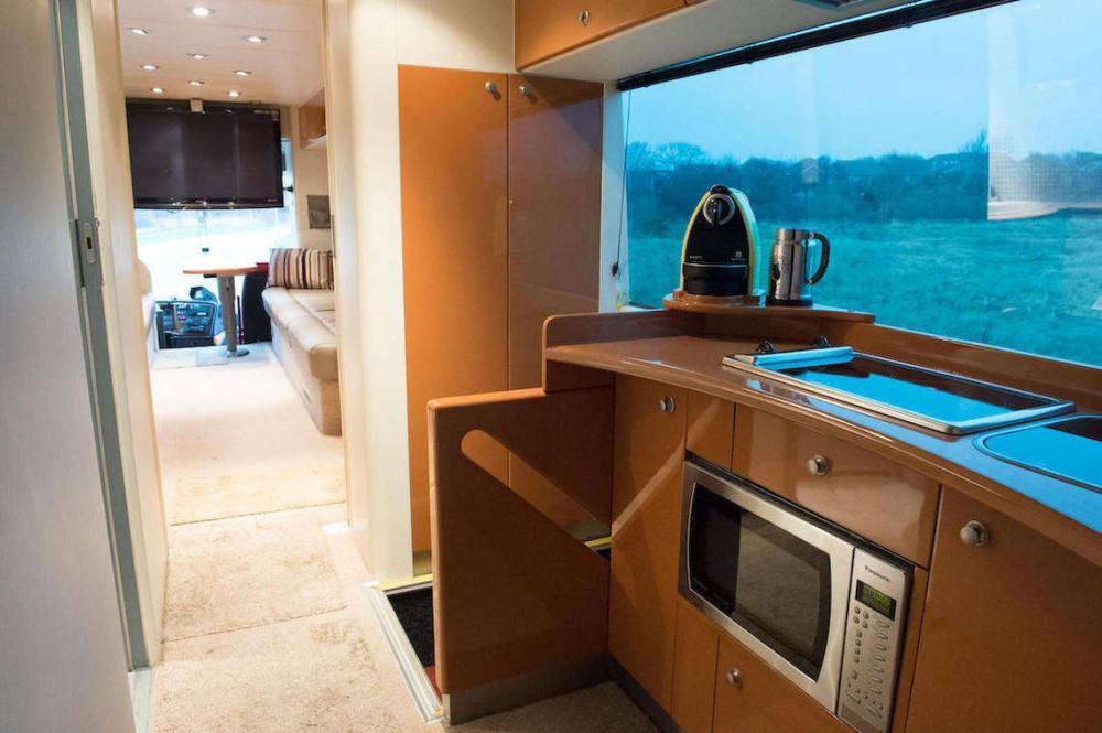 El mejor postor en la subasta del próximo 8 de febrero se llevará un Motorhome Iveco con una conversión completa a autocaravana. Para realizar la conversión se llevó a cabo una serie de mejoras que incluyen componentes electrónicos y mecánicos mejorados, un baño completo con lavabo de cerámica, sistemas independientes de calefacción y aire acondicionado, un generador de 220 voltios a bordo, un sistema home cinema Bose y una cama de matrimonio.
