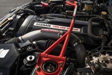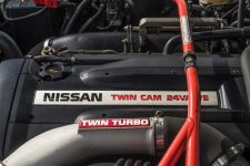 Bajo su capó encontramos al glorioso propulsor RB26DETT, considerado por muchos como uno de los mejores motores de la Historia, un bloque de seis cilindros en línea con 2.568 cc que estaba equipado con dos turbocompresores, inyección electrónica y ligado a una caja de cambios manual de cinco relaciones. Esta transmisión se asociaba al sistema de tracción a las cuatro ruedas ATTESA E-TS, esquema que convertía al Skyline GT-R R32 en uno de los vehículos más eficaces a la hora de convertir su potencia en velocidad.