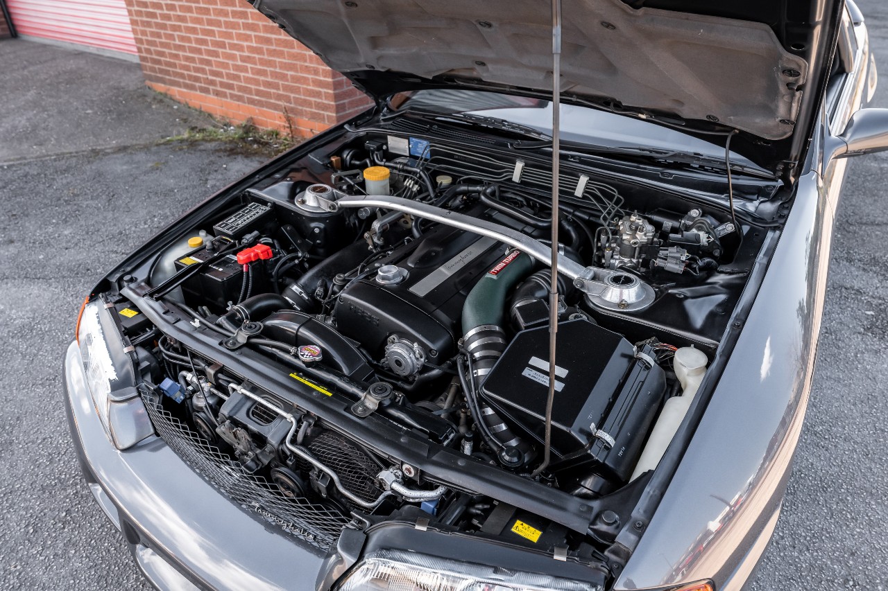 El propulsor es el característico RB26DETT, un bloque 2.6 biturbo de seis cilindros en línea que desarrolla unos 345 CV y se asocia a una caja de cambios manual de cinco velocidades y a un sistema de tracción integral.