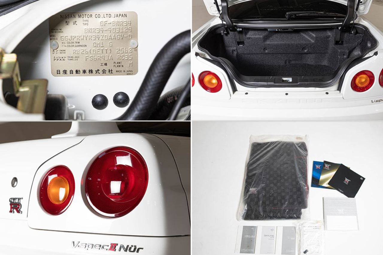 Se trata de uno de los 718 ejemplares construidos con las especificaciones V-Spec II Nur, y uno de los 159 pintados en blanco. La denominación Nur hace referencia a que viene equipado con la versión de carreras N1 del motor RB26DETT, con un cigüeñal recién equilibrado, mejores canales de agua y aceite, pistones mejorados, nuevos turbocompresores y árboles de levas mejorados para optimizar el rendimiento.