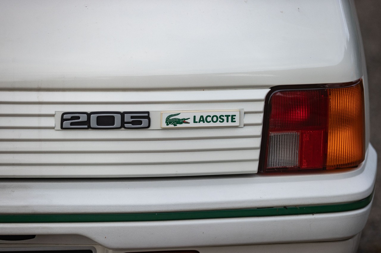 En los tres años en los que se produjo el 205 Lacoste, se construyeron un total de 24.000 ejemplares. Durante 1984, se fabricó exclusivamente en la versión con carrocería de cinco puertas y, en los dos años siguientes, en la variante de tres puertas. Presentaba una estética diferenciada del resto de la gama, pintado completamente en blanco ‘Blanc Meije’, incluidos los retrovisores, los paragolpes y los tapacubos. Además, tenía un techo corredizo y lucía los logos de Lacoste.