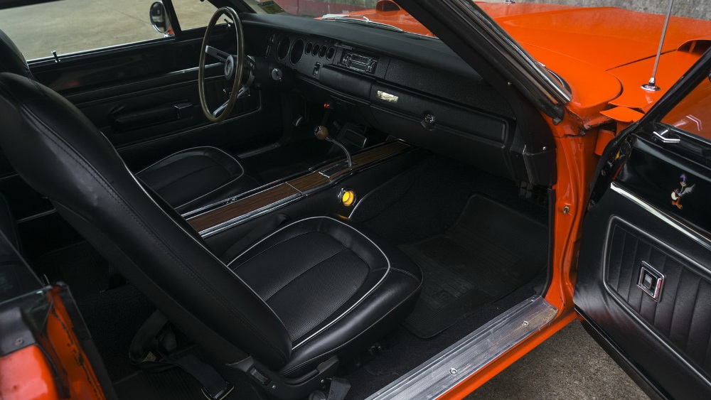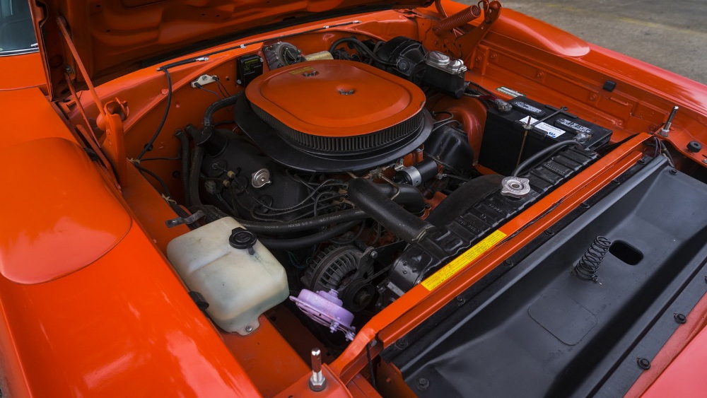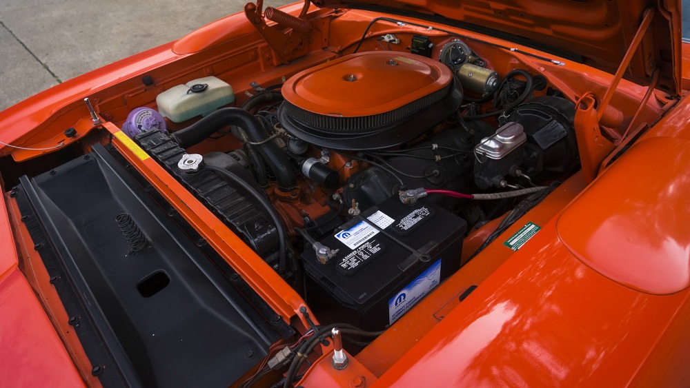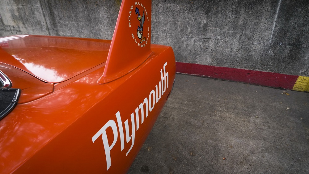 La pintura naranja exterior es completamente de fábrica, a excepción del frontal, el cual tuvo que ser repintado debido a problemas con la capa de laca inicial. Incluye todavía los adhesivos de fábrica de Hemi, así como los componentes aerodinámicos, los cristales tintados, las llantas Rallye de 15 pulgadas, las salidas de escape cromadas, dirección asistida y frenos de disco delanteros.