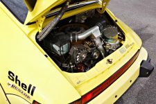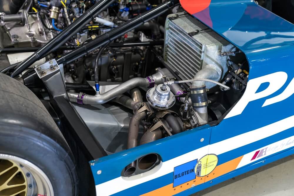 La FIA obligaba a que los motores fueran de menos de 3.0 litros, por lo que los ingenieros crearon un bloque bóxer de seis cilindros y 2.14 litros con turbocompresor. Empleaba un cárter de magnesio, bielas de titanio, bomba de aceite, inyección de combustible Bosch y válvulas refrigeradas por sodio. En la parte posterior se instaló un turbocompresor KKK que permitía que el poderoso motor entregara más de 500 CV asociados a una caja de cambios manual de cinco velocidades con un enfriador de aceite, un diferencial de bloqueo del 80% y semiejes derivados del Porsche 917 para una mayor durabilidad.