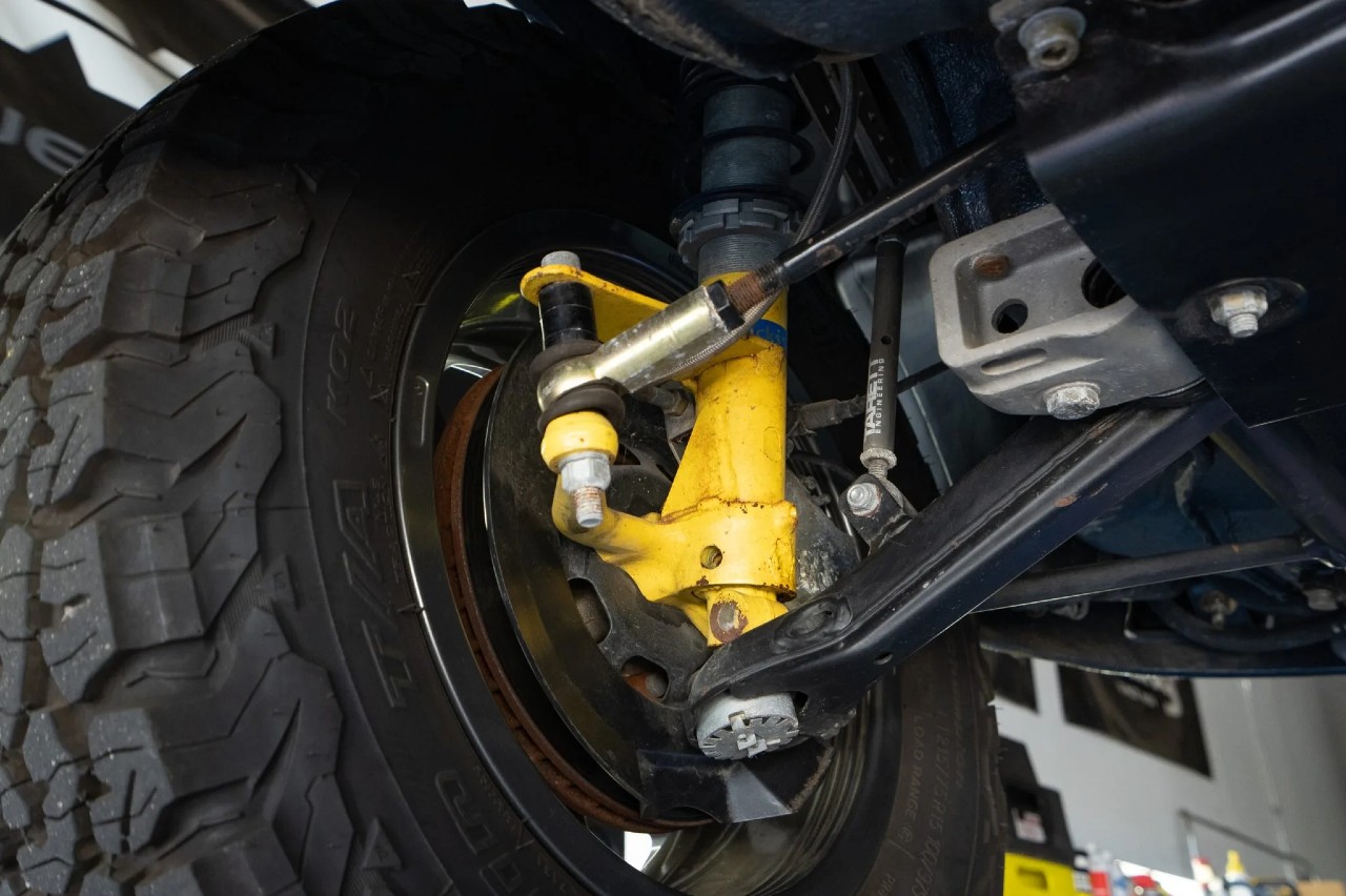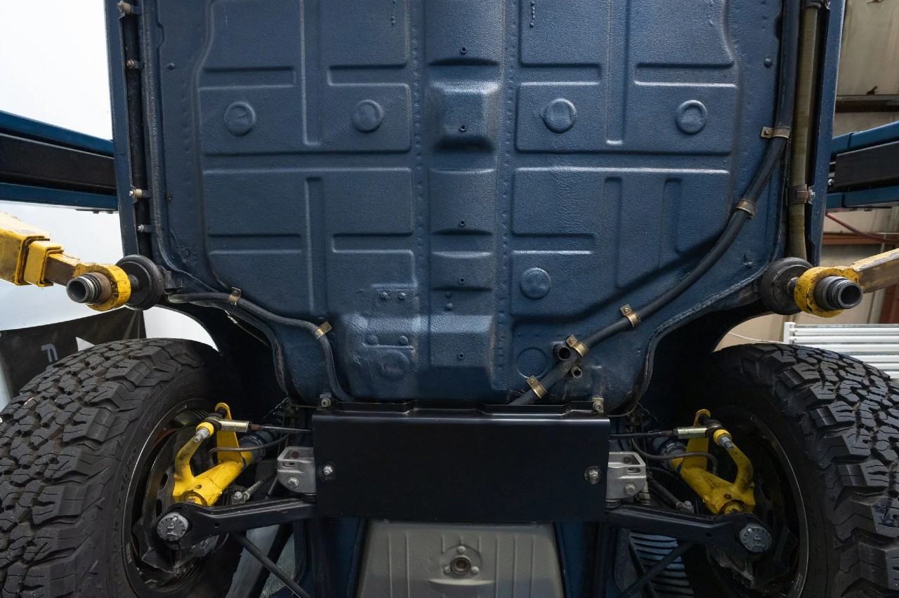 A esto hay que añadir la instalación de un cabestrante Warn, luces auxiliares LED Cibie, una plata de aluminio para proteger los bajos, una barra antivuelco, una estructura en el techo para albergar una rueda de repuesto y una suspensión Von Shocks con resorte helicoidales delanteros que eleva la altura del vehículo.
