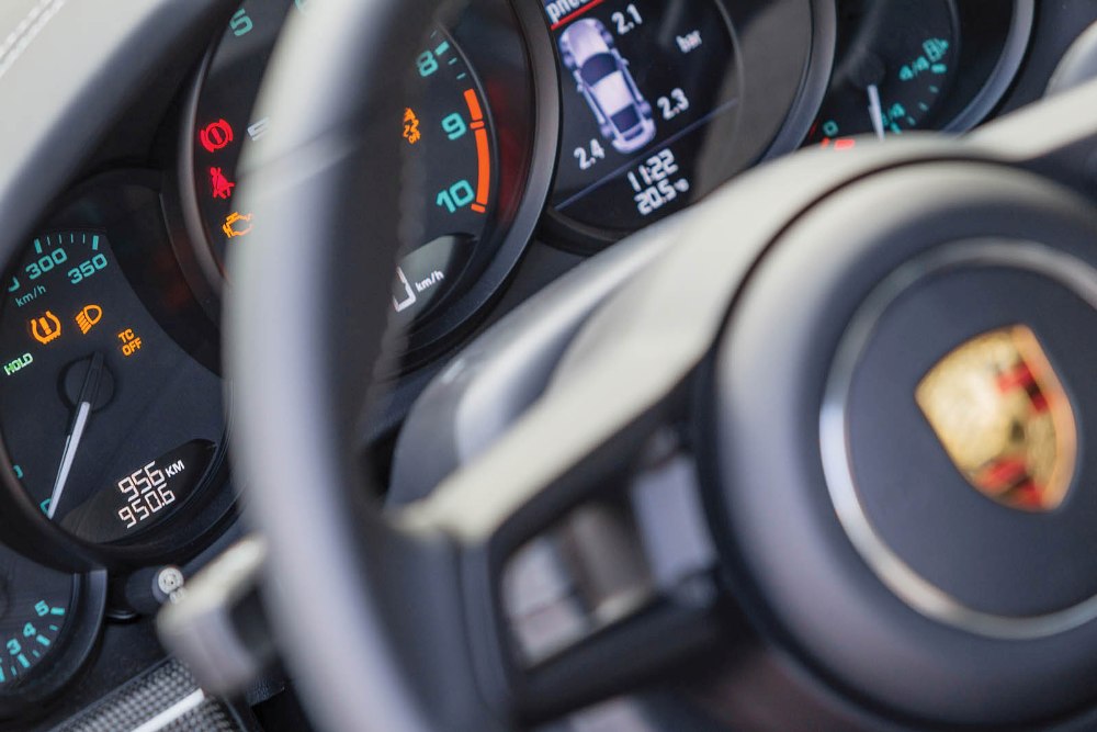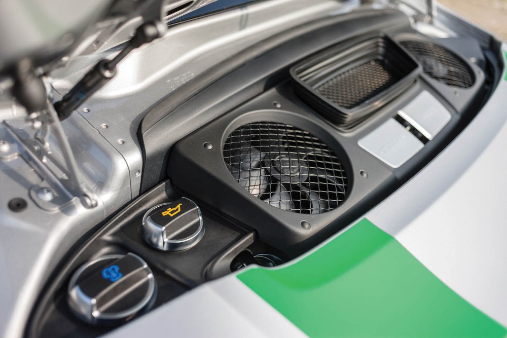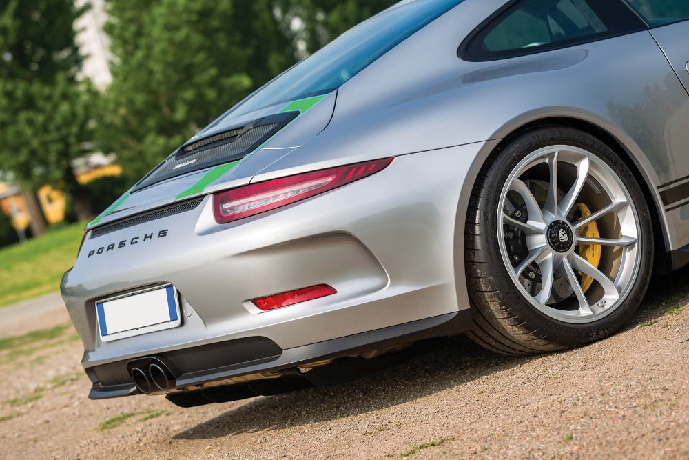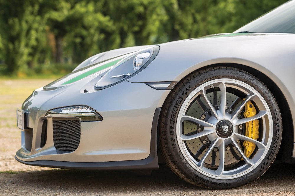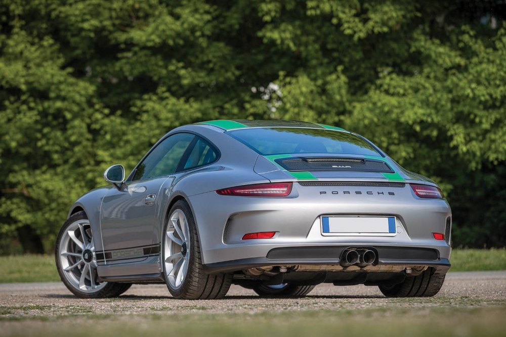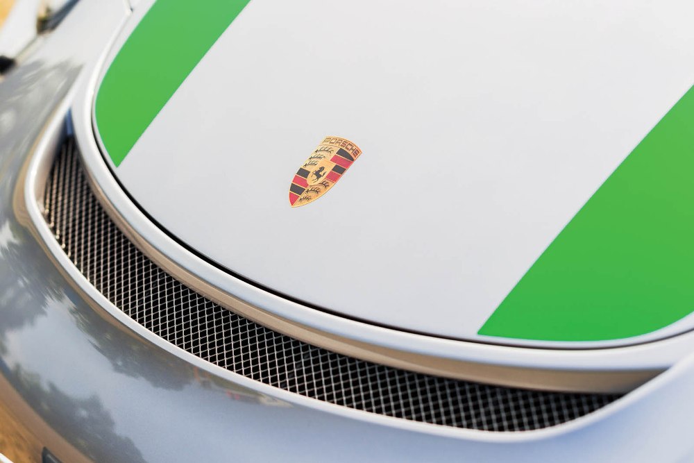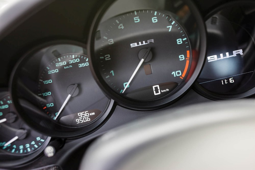 Esta unidad en particular está terminada en plata con las características franjas del 911 R en color verde, acompañado de una tapicería exclusiva y representando la unidad número 235 de la edición limitada. Ha pertenecido a un mismo dueño italiano durante el último año y, aunque lo compró a precio de fábrica, tendrás que desembolsar una gran cantidad si te lo quieres llevar. Las fotos de Cymon Taylor para RM Sotheby’s hablan por sí solas.