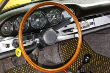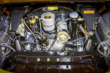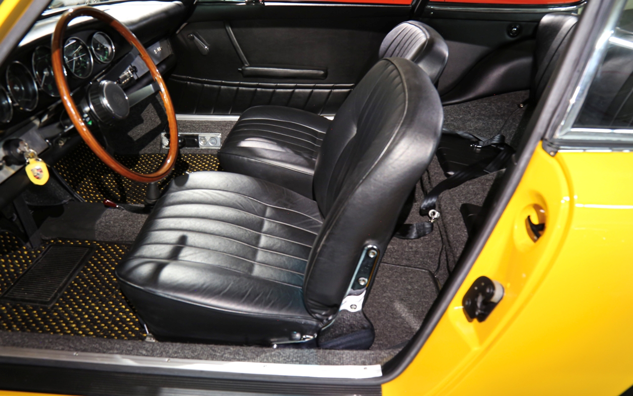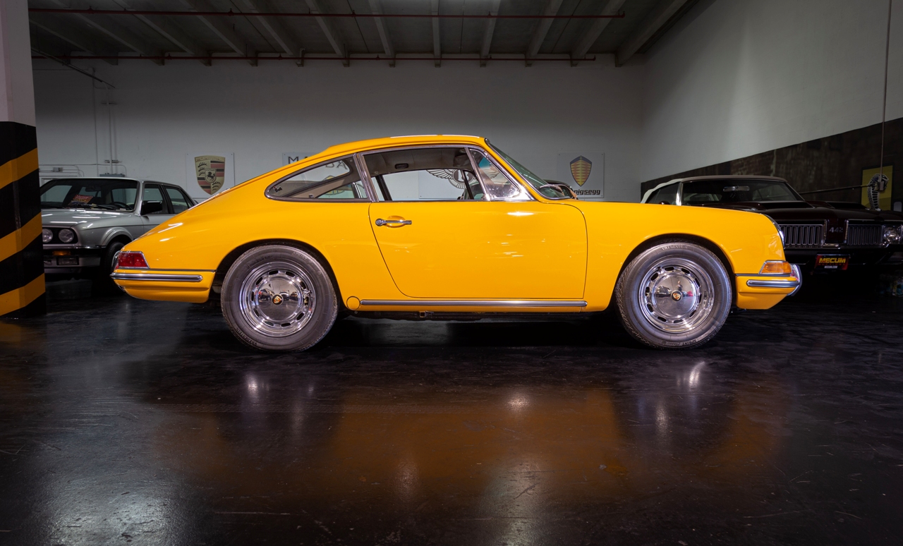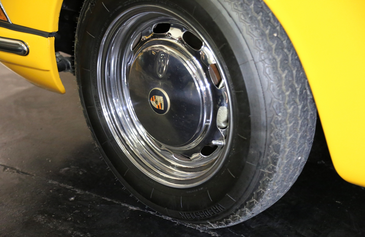 Esta unidad en particular fue adquirida nueva en 1967 y está terminado en pintura Bahama Yellow sobre cuero sintético negro con un salpicadero de aluminio cepillado. Equipa sus correspondientes llantas cromadas de 15 pulgadas con tapacubos a juego y el escudo de Porsche a color, las cuales están revestidas con neumáticos clásicos de época.