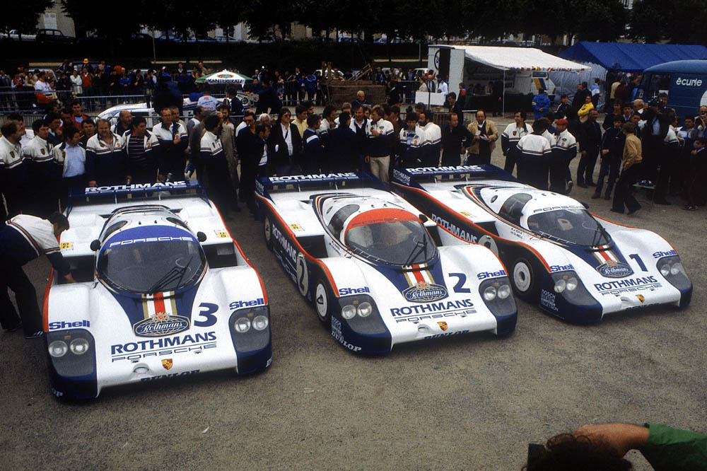 Este Porsche 956 que sale a subasta es uno de las 10 unidades del 956 que fabricó la marca y cuenta con la característica decoración Rothmans y un pasado histórico francamente impecable. Debutó en Le Mans en el año 1982 (con Jochen Mass y Vern Schuppan a los mandos), donde logró colocarse en la segunda posición de la general tras otro 956 (también decorado con los colores de Rothmans y que puedes ver en la galería de imágenes), ganando las siguientes cuatro carreras en las que participó, con pilotos tan ilustres como Jacky Ickx o Derek Bell.