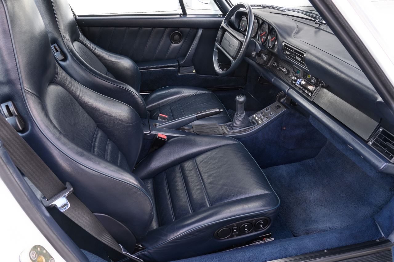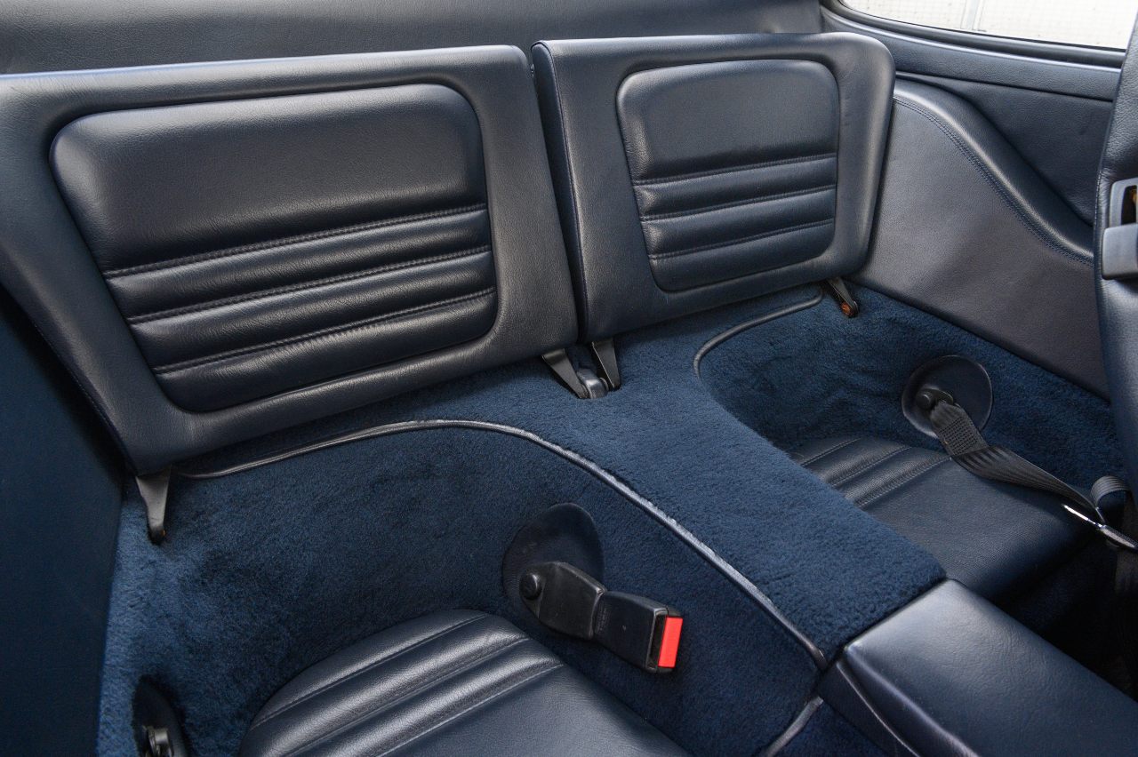 A pesar de ello, su estado es prácticamente inmaculado. Luce el mismo color Grand Prix White de carrocería original, que se combina con un interior tapizado en cuero azul oscuro. Además, cuenta con equipamiento como los asientos calefactados y regulables electrónicamente, o un sistema de alarma.