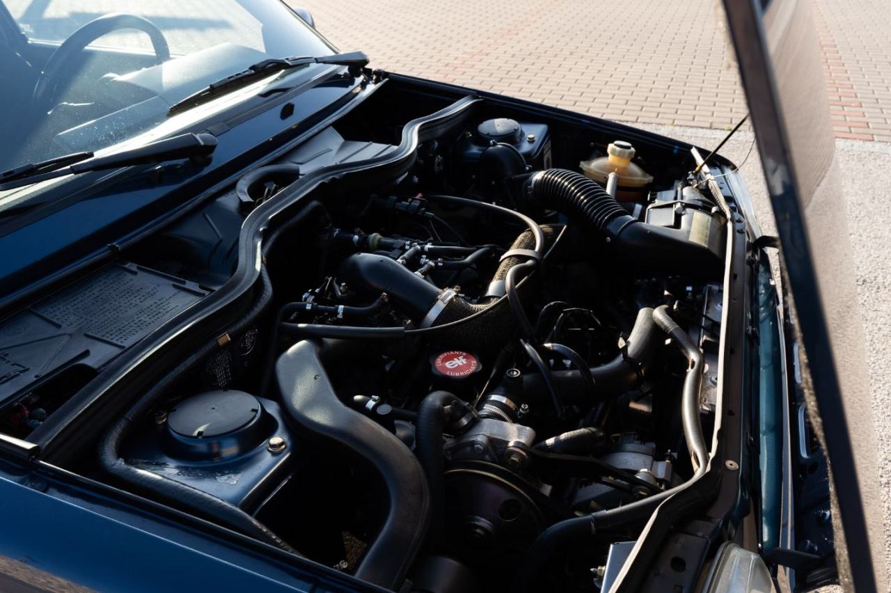 El coche está terminado en una elegante pintura de color azul oscuro denominada Blue Sport. Reposa sobre unas llantas de 13 pulgadas en diseño de cinco radios con el mismo tono de pintura que la carrocería y neumáticos Michelin. El interior, mientras tanto, cuenta con asientos deportivos tapizados en tela negra con detalles azules y una instrumentación naranja, así como un volante de tres radios, climatización y un radio casete.